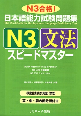 Contains well over 200 grammatical items -more than ample coverage for the N3 level. Learn the meanings and usages of patterns in the context of both conversations and written texts. Also includes focus sessions on honorifics, adverbs, and conjunctions, as well as three mock exams.