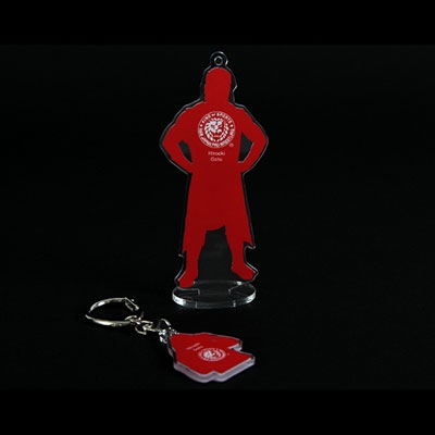 人気ゲーム「戦国BASARA」製作チームがプロデュースした後藤選手の試合コスチューム「雷神」をフィーチャーしたフィギュアシートキーホルダー。全身と上半身の2体セットなので、上半身を「キーホルダー」にして携帯し、全身は「フィギュア」として部屋に飾ったり、楽しみ方は色々。