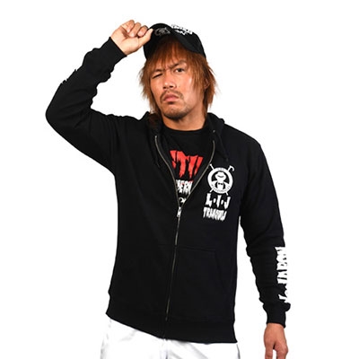 ロス・インゴベルナブレス・デ・ハポンのパーカー。左胸にはオリジナルロゴに加え「L・I・J」「トランキーロ」の文字をプリント。右腕には「ロス・インゴベルナブレス」、左腕には「デ・ハポン」、バック面には軍団ロゴに加え、運命を司る4つの日付(4選手の軍団加入日)をデザイン。
