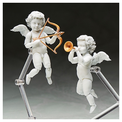 だれもが知っているあの芸術作品が、figmaになって動き出す、それがテーブル美術館です。第六弾となる今作は、西洋の彫刻美術の中でも、伝統的なモチーフとして愛され続けている「天使像」です。今作では、あえて実存する作品ではなく、さまざまな作品からのインスピレーションを元に、だれもが可愛いと感じる「天使像」を立体化しました。また一部パーツを差し替えることで、「小便小僧」を再現できるなど、様々な表情を持った作品に仕上がっております。愛らしい天使たちのポージングで、癒しのひと時をお楽しみください。