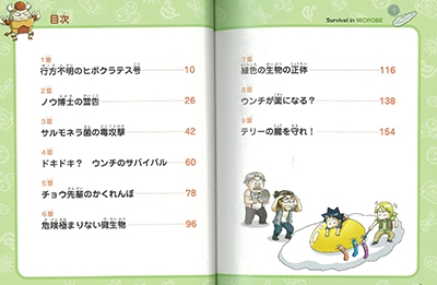 ヒポクラテス号に乗って小さくなったジオとケイは、再び微生物の世界へ。犬の毛の中やタオルの表面、水中などさまざまな場所で、食中毒の原因となるサルモネラ菌や抗生物質の効かないスーパーバクテリアなど、危険な微生物たちと遭遇。予測不能の大冒険を繰り広げることになってしまった2人は、無事にもとの世界に戻ってこれるのか?