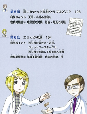 あかつき小学校に誕生した実験チームが、つぎつぎにあらわれるライバル校と、さまざまなテーマの実験で対決勝負をしていくバトル形式のストーリー。オールカラーで読みやすい物語を通して、複雑な科学原理から生物の分類まで楽しく学べます