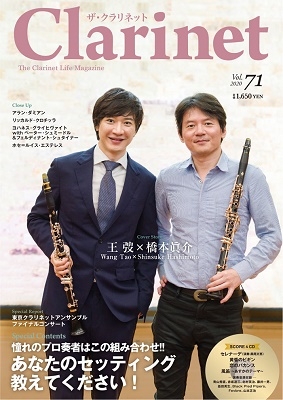 今号の表紙と巻頭インタビューは、北京・中央音楽学院教授のワン・タオ氏と、名古屋音楽大学准教授の橋本眞介氏に登場いただきました。ヨーロッパに留学され、後進の指導にもあたり、ヤマハ・クラリネットを愛用されていることなど、共通点も少なくないお二人のクラリネット人生に迫りました。