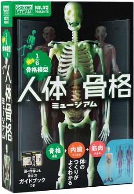 成人の約6分の1サイズの人体骨格模型。リアルな模型をパズルのように組み立てるうちに、からだのつくりや骨の形に詳しくなれる。骨格模型と同縮尺の筋肉パネル・内臓フィルム付きで、骨と筋肉や内臓との位置関係もよくわかる。