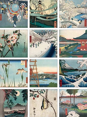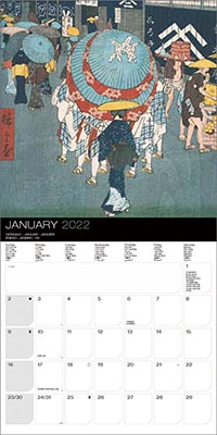 大胆な構図などとともに、青色、特に藍色の美しさで評価が高い歌川広重の遠近法は印象派以後の画家、特にゴッホに影響を与えたことで知られています。(日本の祝日表記あり)