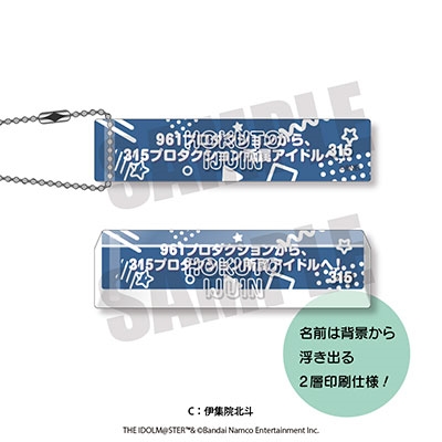 アイドルたちのキャッチコピーをデザインした10mm厚のアクリルのルームキーホルダーです。