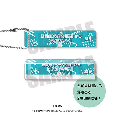アイドルたちのキャッチコピーをデザインした10mm厚のアクリルのルームキーホルダーです。