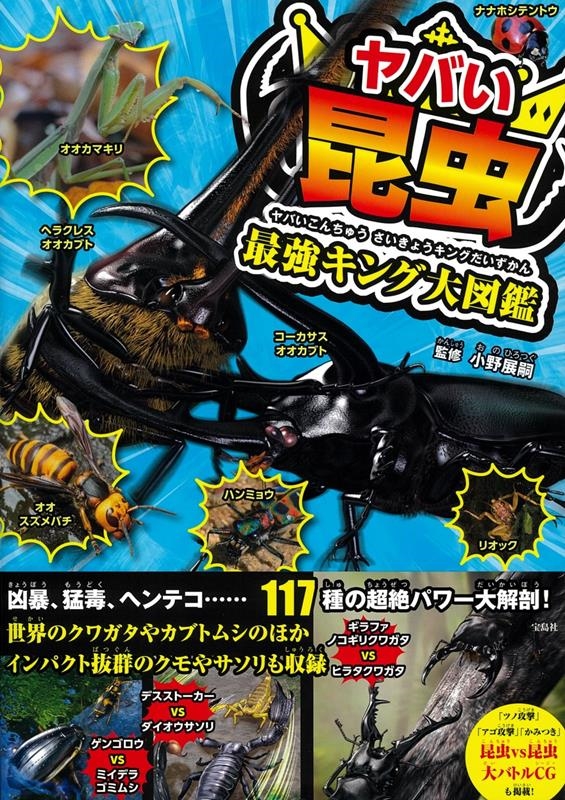 これまでのバトルイラストに加えて、"ヤバい昆虫"の写真も掲載。捕まえ方や生息地などの情報も満載! 夏休みの自由研究の資料としても使用できます。