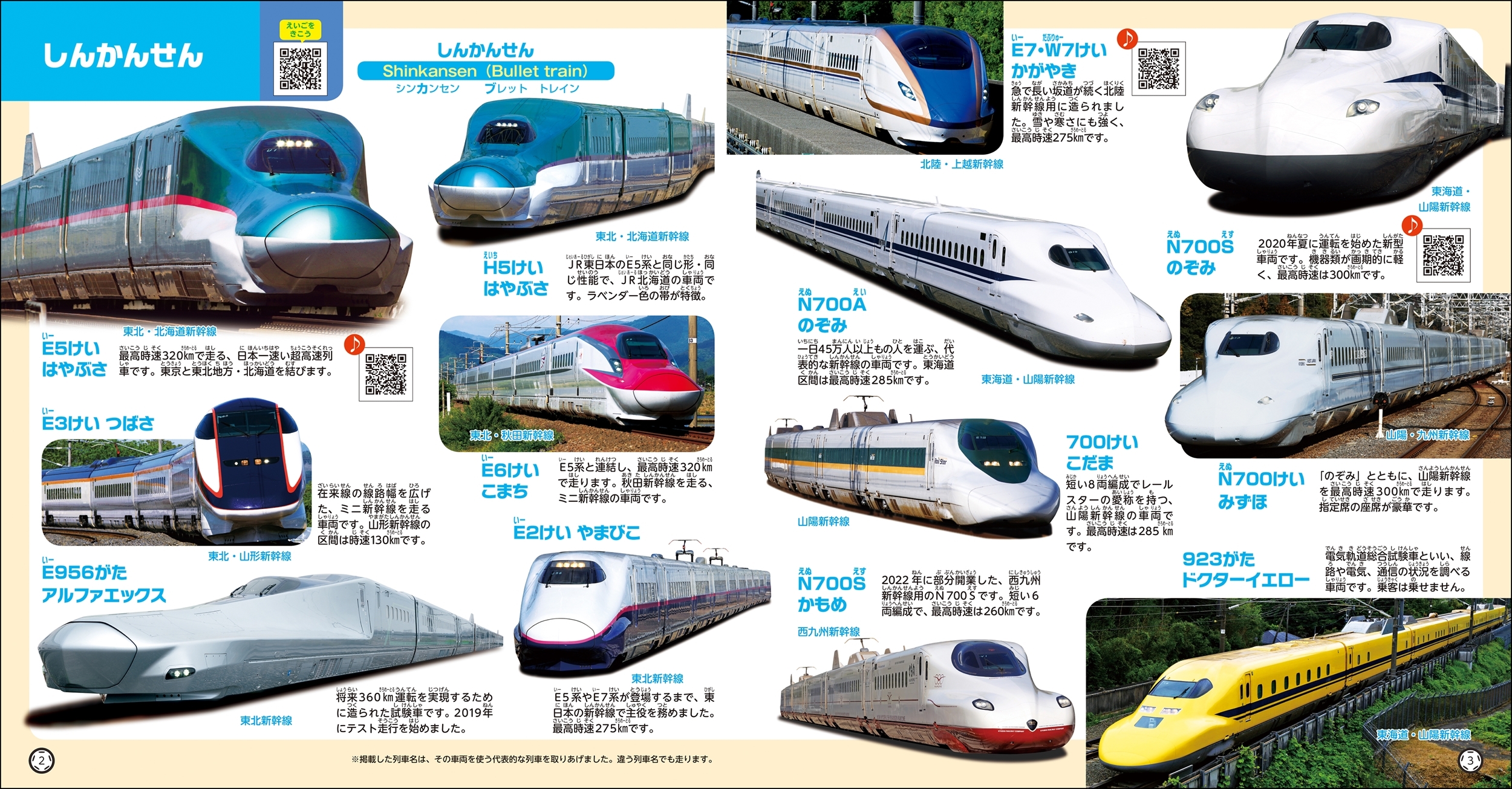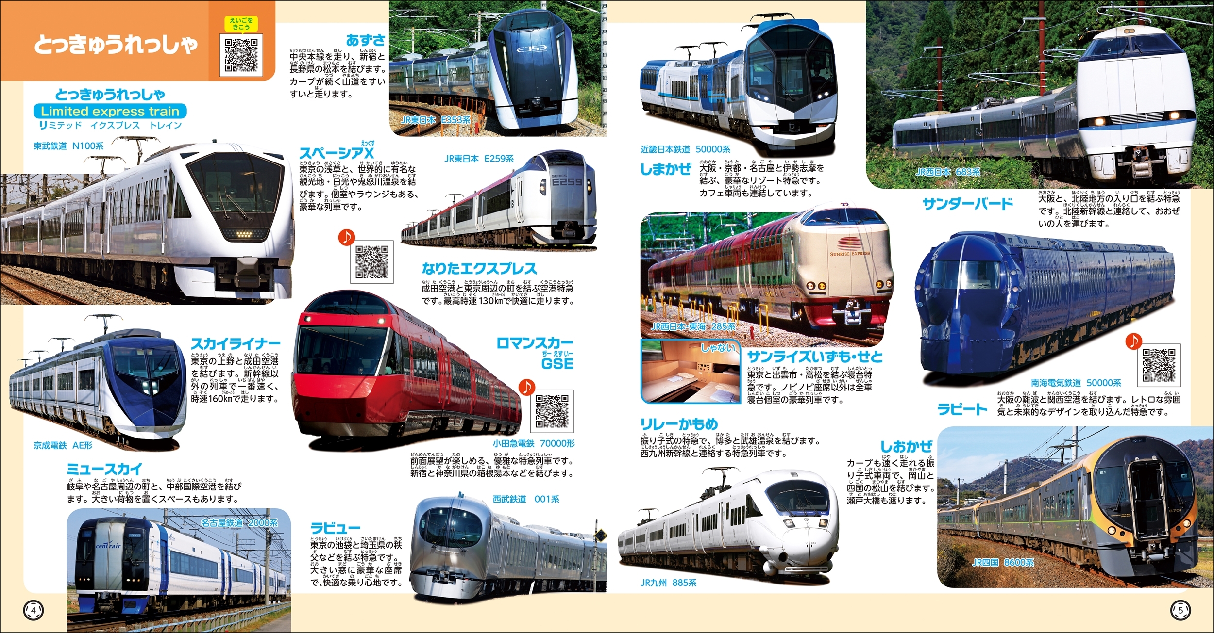 本書では掲載されているQRコードをスマートフォンのQRコード読み取りアプリ、バーコードリーダーアプリなどで読み取ることで、英語や乗り物の音の音声ファイルにアクセスし、聴くことができます。