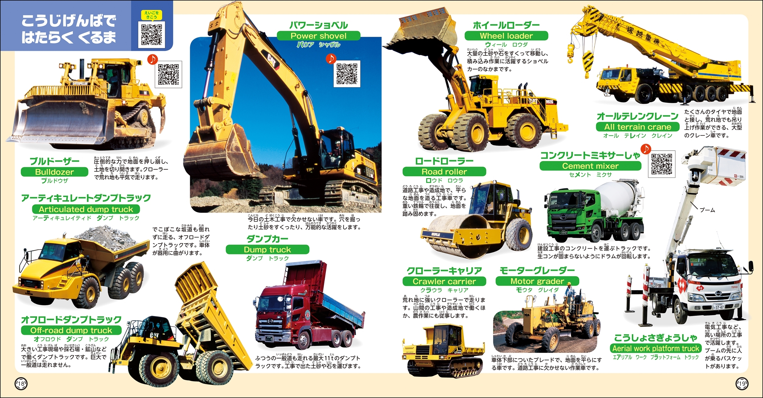 楽しみながら言葉に親しみ、英語学習もできます。また、電車の走行音、パトカーのサイレン、ブルドーザーの作業音など、迫力ある音も楽しむことができます。