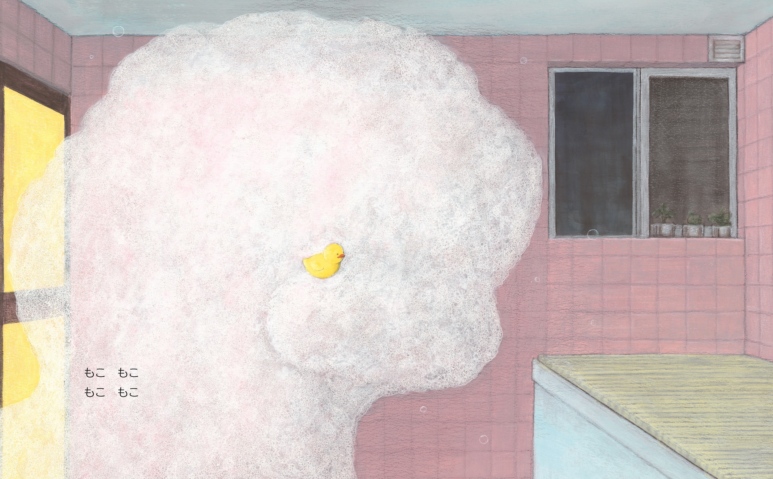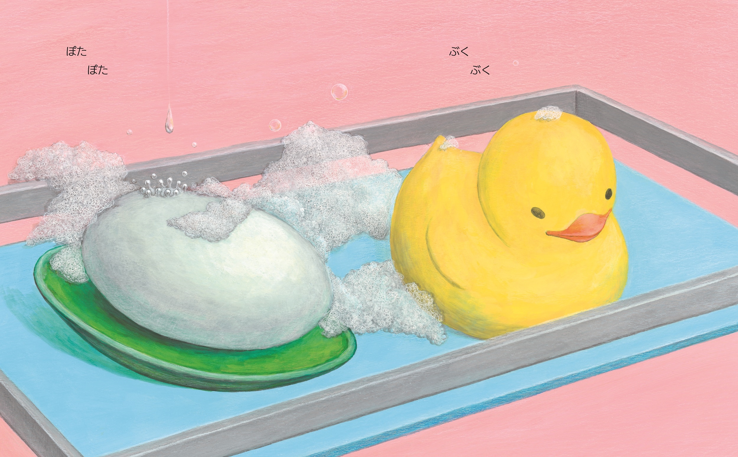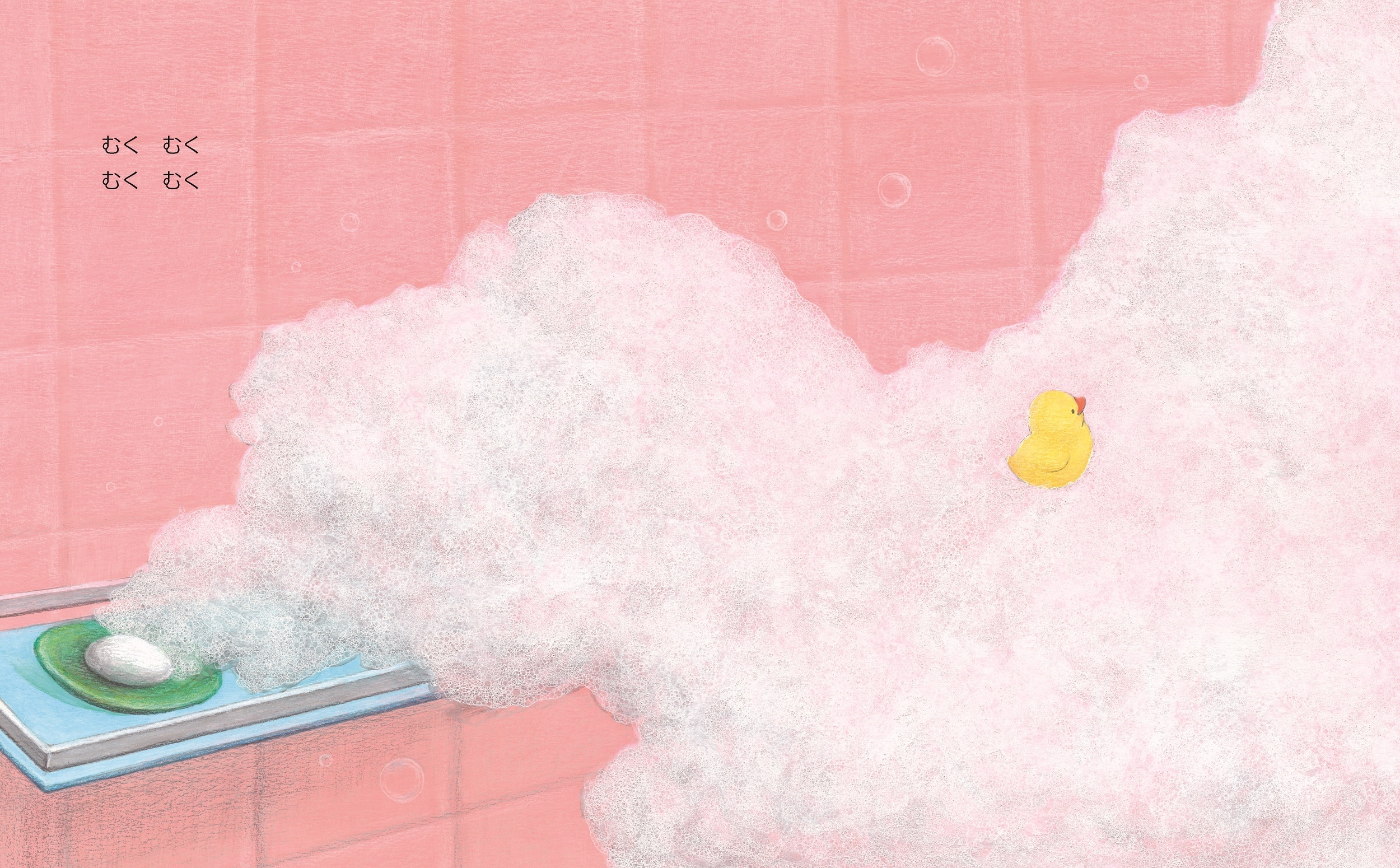 とびらをしめたお風呂場で、せっけんあわだち動き出す。ぬぅ~んと窓から飛び出たら、あとは気ままに空の旅。いろんな形にかわっていたら、かみなりバシーンと鳴り響き――。ぐーんと想像がふくらんでいく、「せっけんの時間(アワー)」へようこそ!