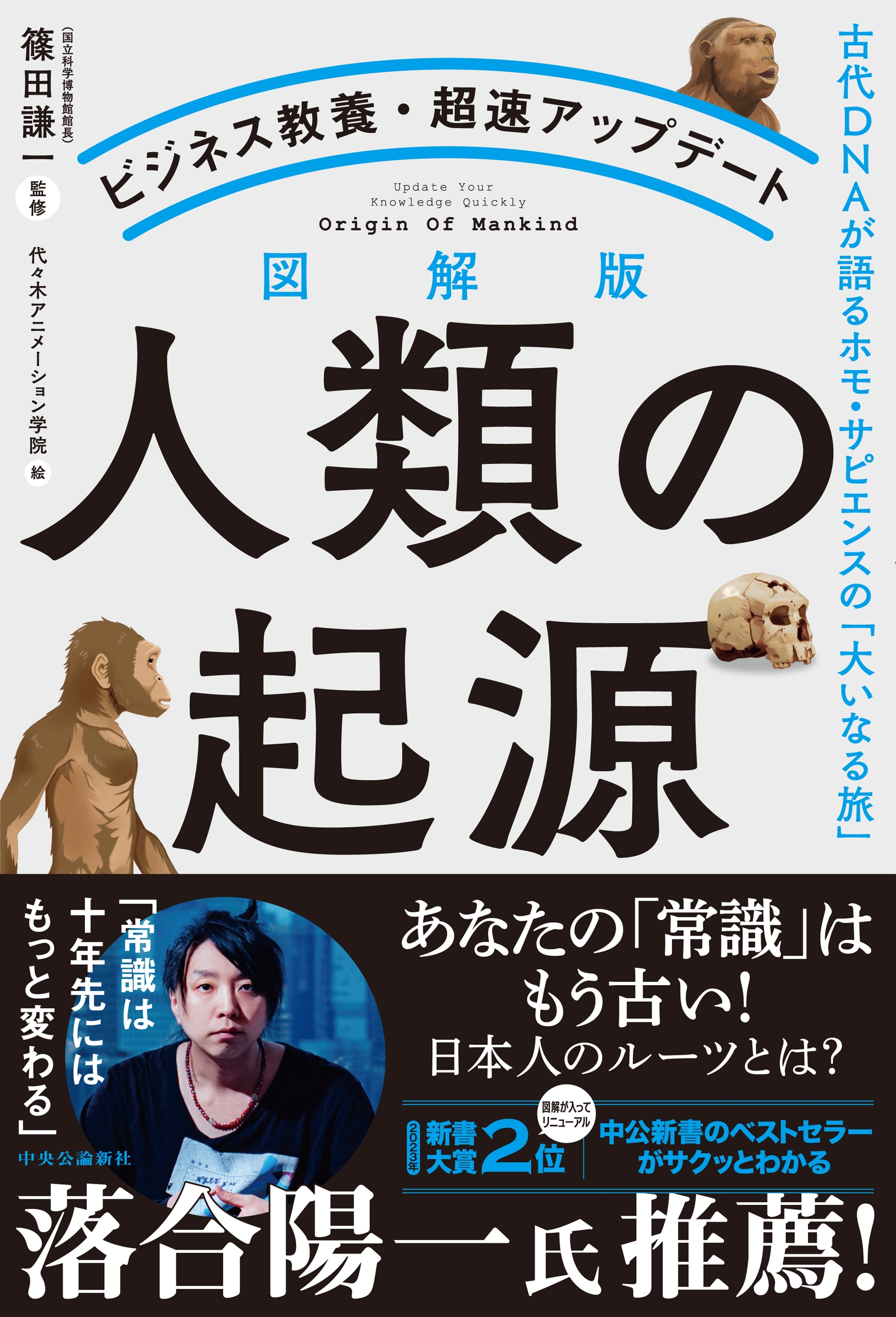 「えっ? 最初の人類はアウストラロピテクス」じゃないの?」。あなたの教養は30年前の常識かも! ノーベル賞受賞で注目の集まる進化人類学。急速に発展するこの分野の最新成果をコンパクトな一冊に。11万部突破、新書大賞2位(2023年)の篠田謙一著『人類の起源』(中公新書)の要点を直感的に理解できるようにビジュアル化。30万年前にアフリカで誕生したホモ・サピエンスは、どのように全世界に広がったのか? 日本人のルーツとは? 巻末には落合陽一氏と監修者のスペシャル対談を収載。