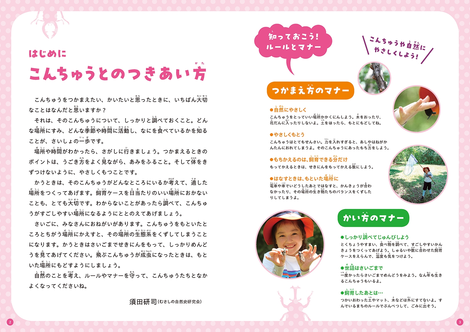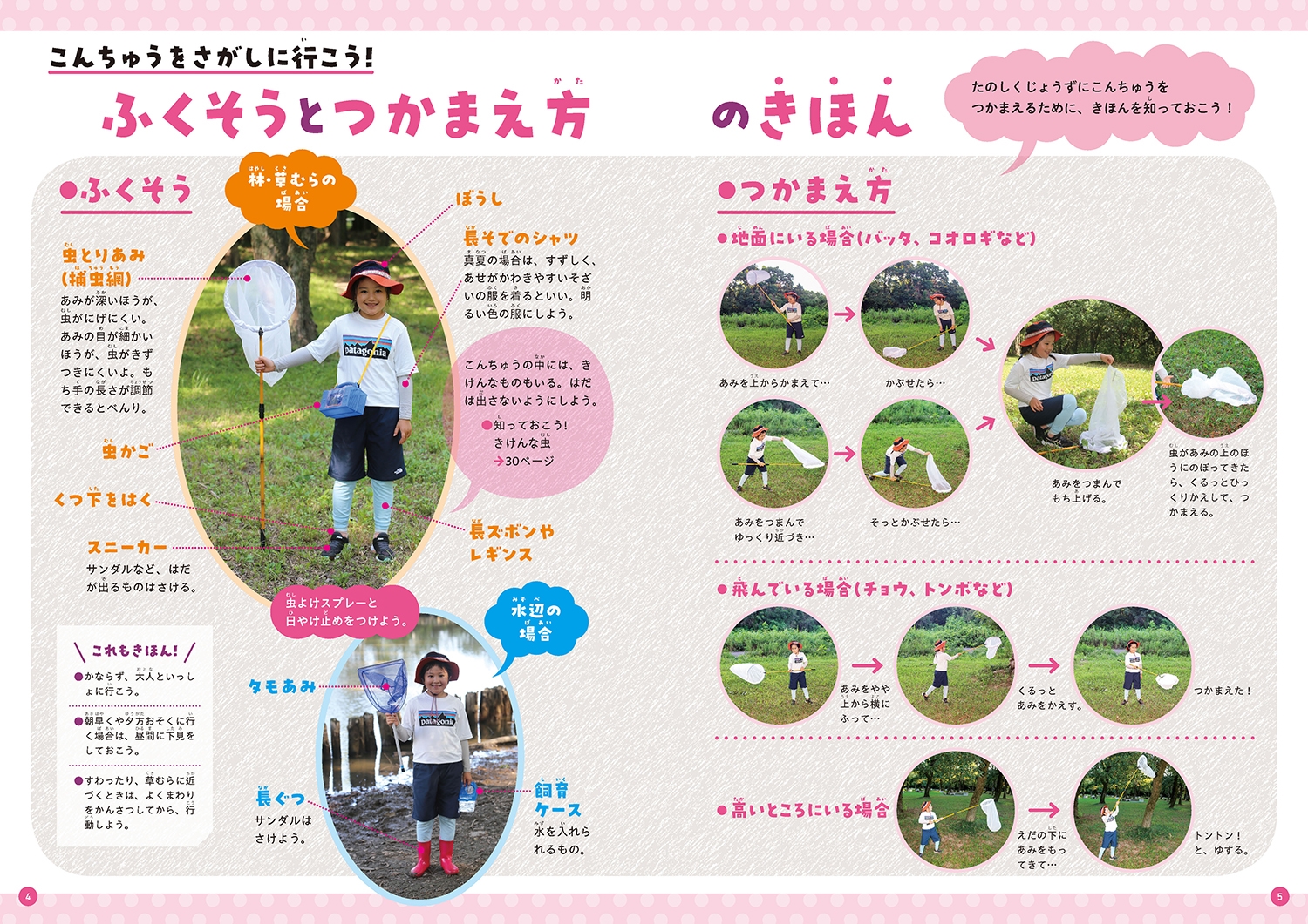 虫をよく観察するには、つかまえてかうのがいちばん! 教科書に登場するモンシロチョウやトンボ(やご)、人気のカブトムシなど、おもな虫の幼虫と成虫、それぞれのつかまえ方とかい方を紹介します。つかまえ方はあみの振り方や虫の持ち方を、写真で解説。虫や環境に優しくするためのポイントも。かい方は、イラストでていねいに紹介。きちんと育てられるよう、虫によって羽化や産卵のためのポイントなども、細かく記載しています。