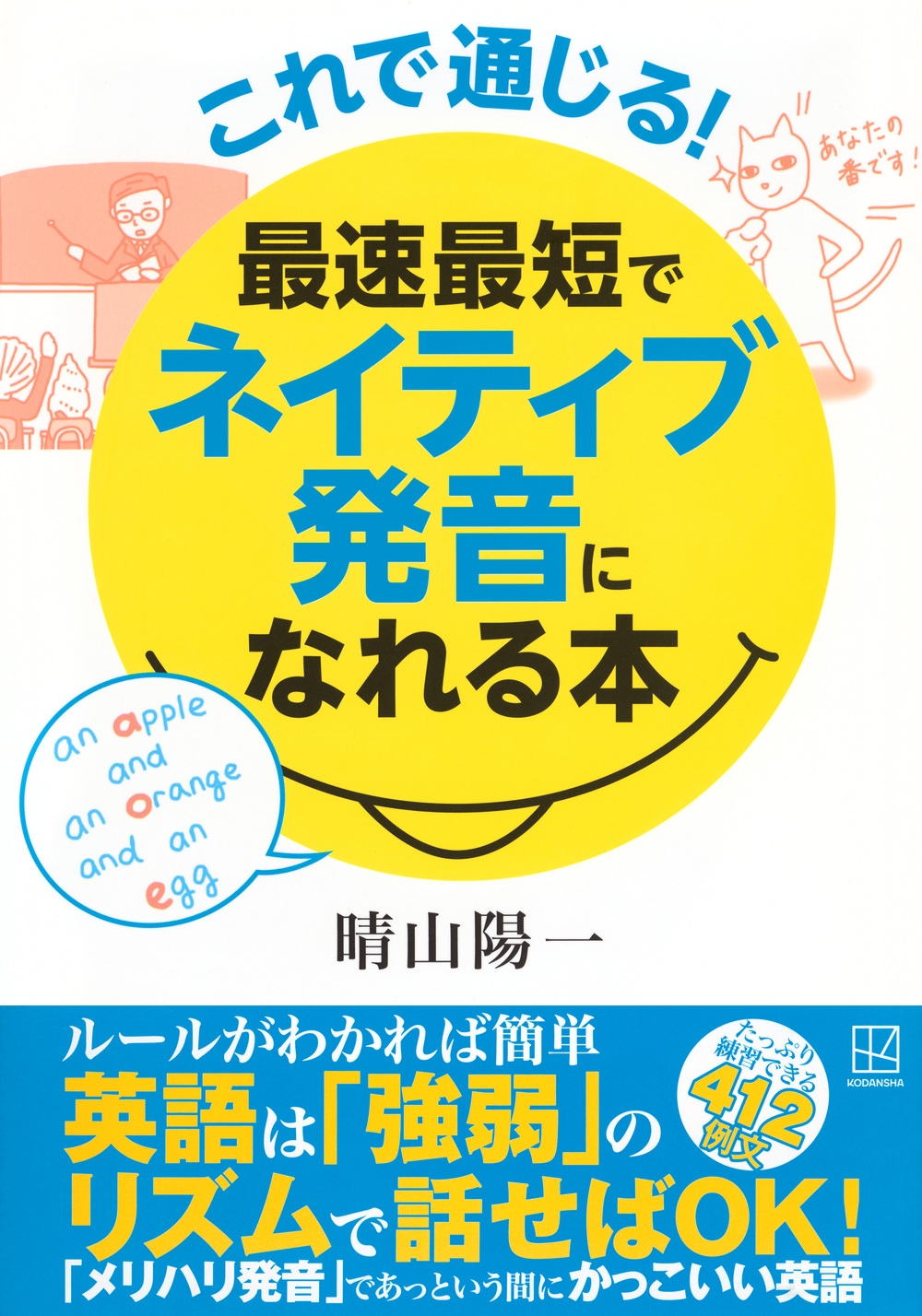 本書では内容語の強調と、それに伴う(1)つながる音、(2)弱くなる音、(3)消える音、(4)音の変化などの英語の特徴について説明し、文単位での練習をたくさん行います。この練習で、簡単にネイティブっぽい発音を手に入れる道筋を示します。