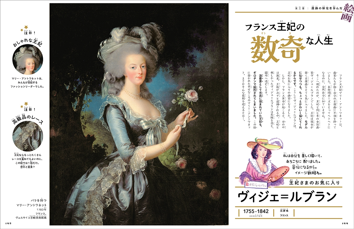 セルフプロデュースに長けていたインスタグラマー風のヴィジェ=ルブランなど、伊野孝行さんが描いた画家たちのユーモラスなイラストも魅力のひとつ。画家たちの個性あふれるセリフとともにお楽しみいただけます。