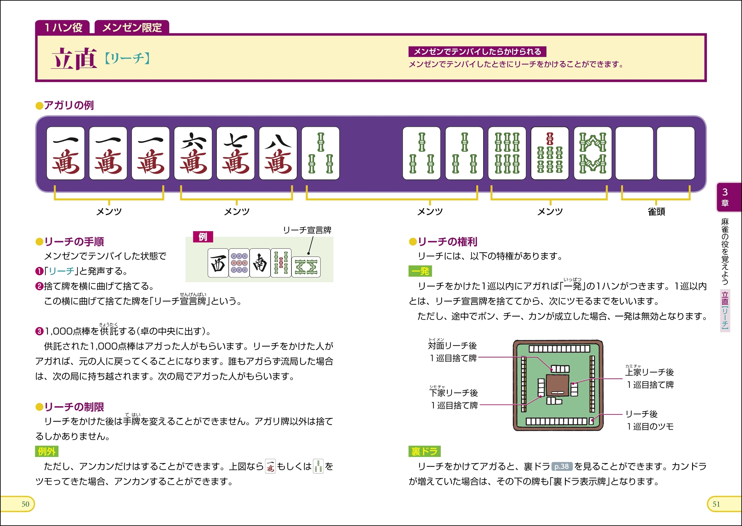 リーチ、ピンフ、タンヤオといった麻雀の役をわかりやすく解説していきます。初心者は数が多く、大変なように思います。まずは最初の関門です。楽しく学べるように、楽しいイラストを配し、解説していきます。