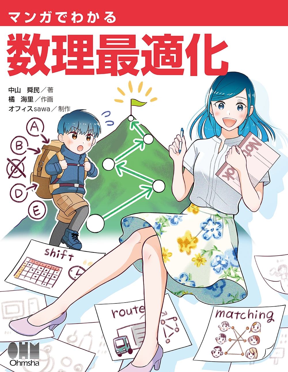マンガのストーリーで最適化の数式の意味(数学記号、計算式など)と具体的な例題で実務が学べる。