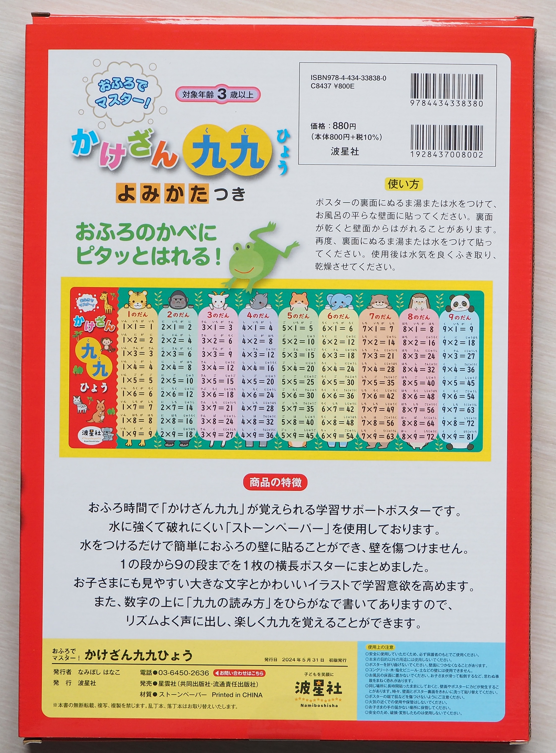 おふろでマスター! かけざん 九九ひょう 水でピタッと!かわいいどうぶつといっしょに九九を覚えよう