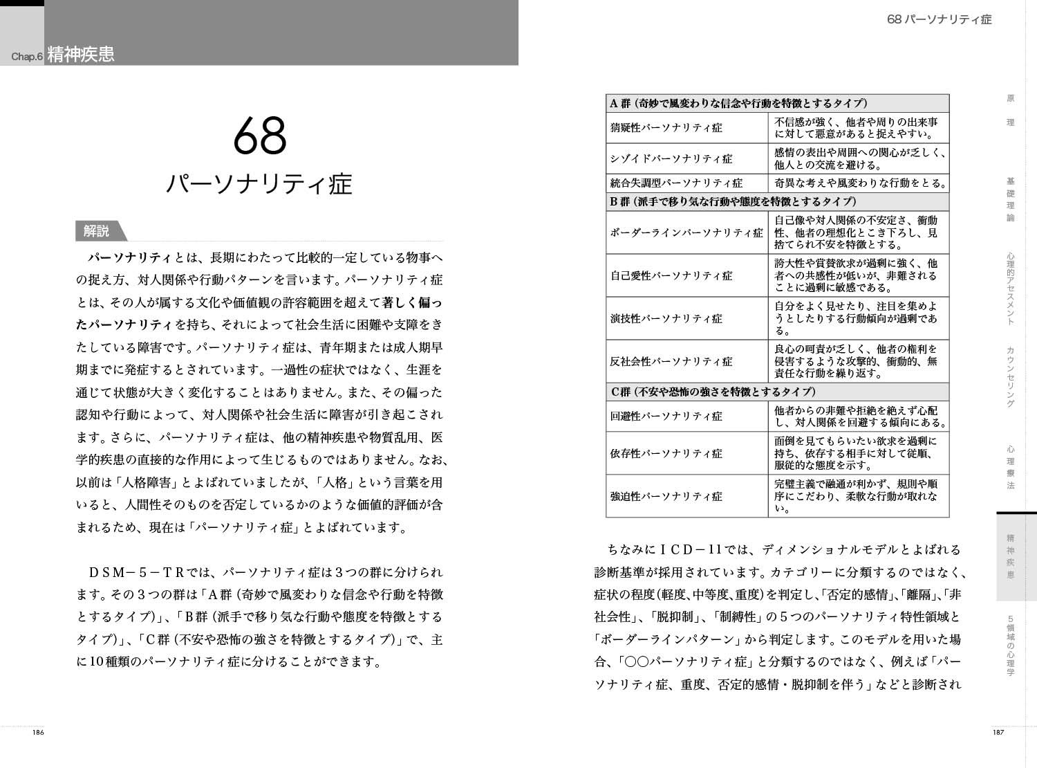 臨床心理学の「原理」「基礎理論」「心理的アセスメント」「カウンセリング」「心理療法」「精神疾患」「5領域の心理学」の各分野から85の重要タームを厳選して掲載。大学4年間で学ぶ臨床心理学をこの一冊でおさらいできます。