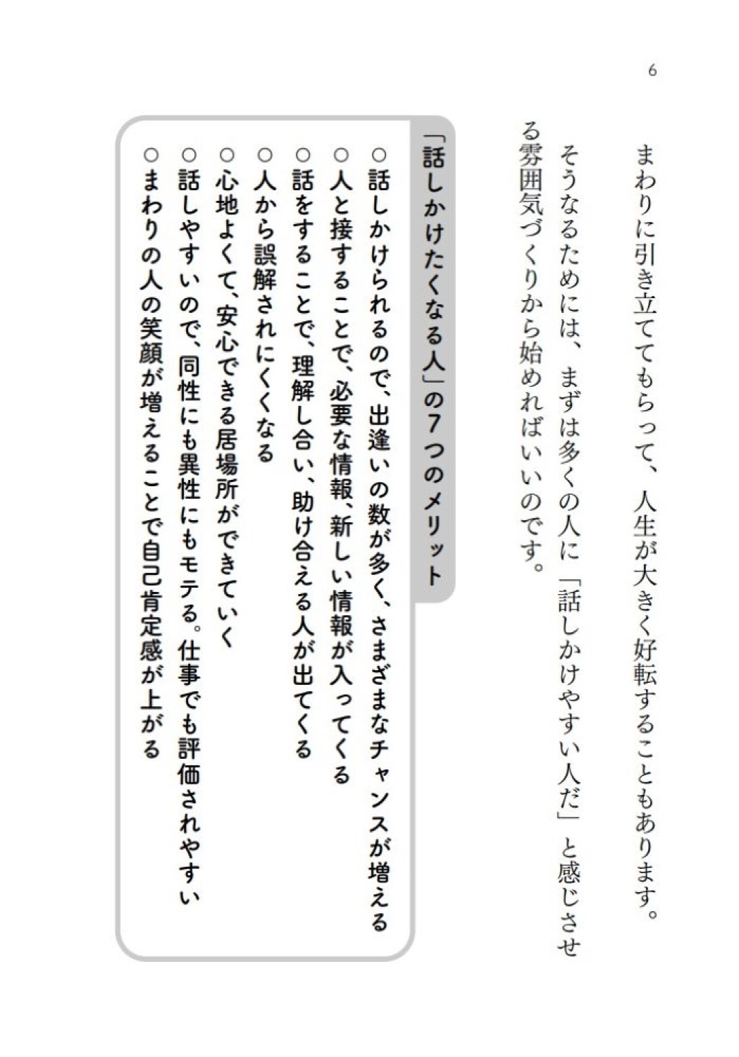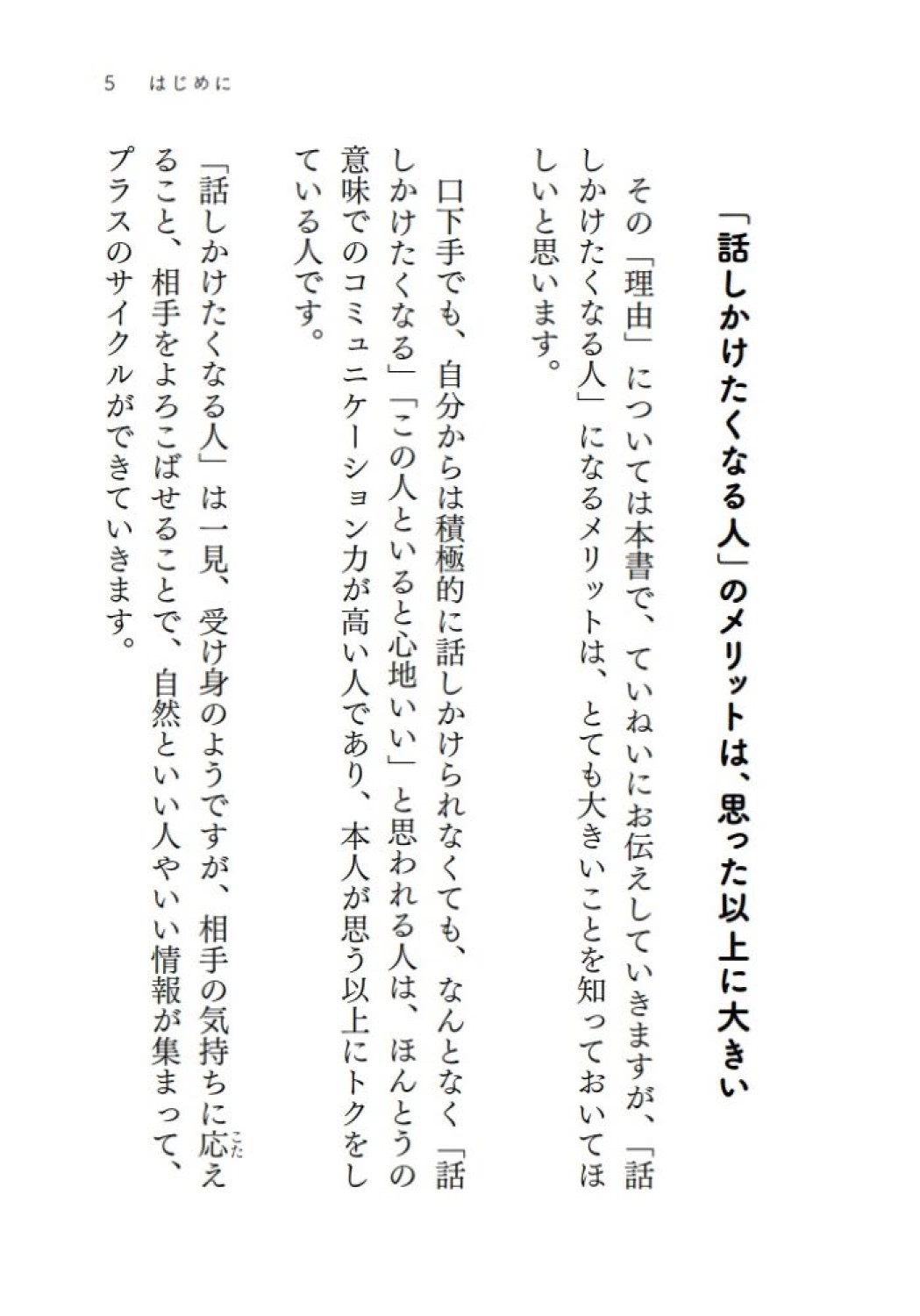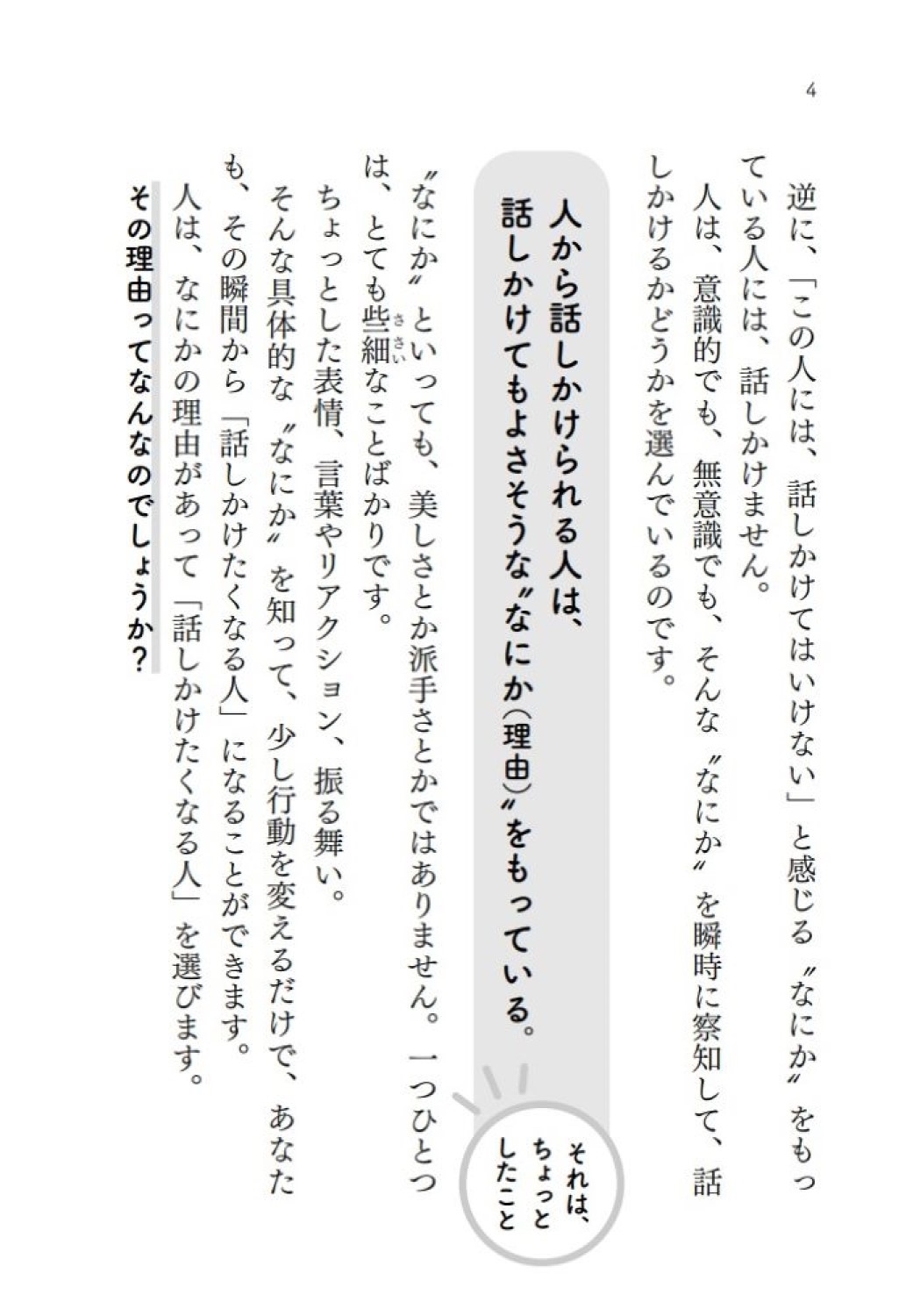 そんな具体的な"なにか"を知って、少し行動を変えるだけで、あなたも、その瞬間から「話しかけたくなる人」になることができます。