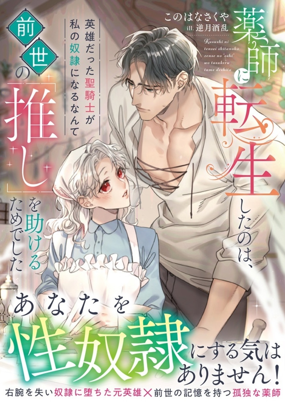 「右手があれば、あなたをもっと気持ちよくしてさしあげるのに」薬師のフランバニエは日本人のOLだった前世の記憶を持っている。ある日、弟子候補を探しに奴隷市に行った彼女は、前世でハマった乙女ゲームの推しキャラで聖騎士のルードヴィクが売られているところに遭遇。迷った末にルードヴィクを買ったフランバニエは、彼が屍竜との戦いで負ったひどいやけど痕と失った右腕の治療をはじめ……。