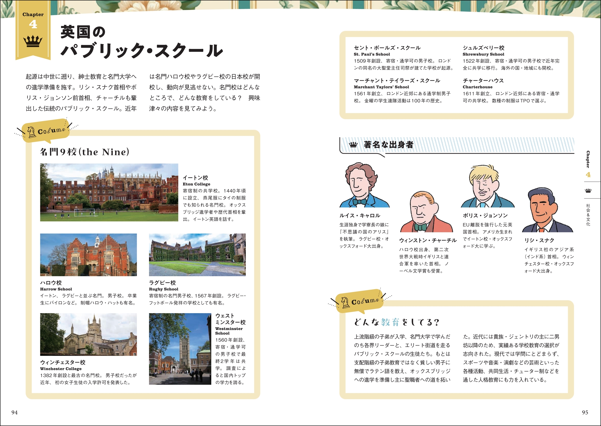 紅茶、ガーデニング、サッカー、ロック、文学、演劇など、イギリス発祥のカルチャーは数多く、遠く日本にもたくさんのファンがいます。重厚な歴史がありながら、常に新しい作品が発信されていたり、日常的に紅茶を楽しむ人がいたり、街のそこかしこに劇場があったりするなど、現代の人々の生活に文化が溶け込んでいるのもイギリスの魅力といえるでしょう。本書はそれらをテーマごとに、豊富なイラスト、写真とともに紹介。イギリス文化が好きな人も、はじめて知る人も楽しめます。