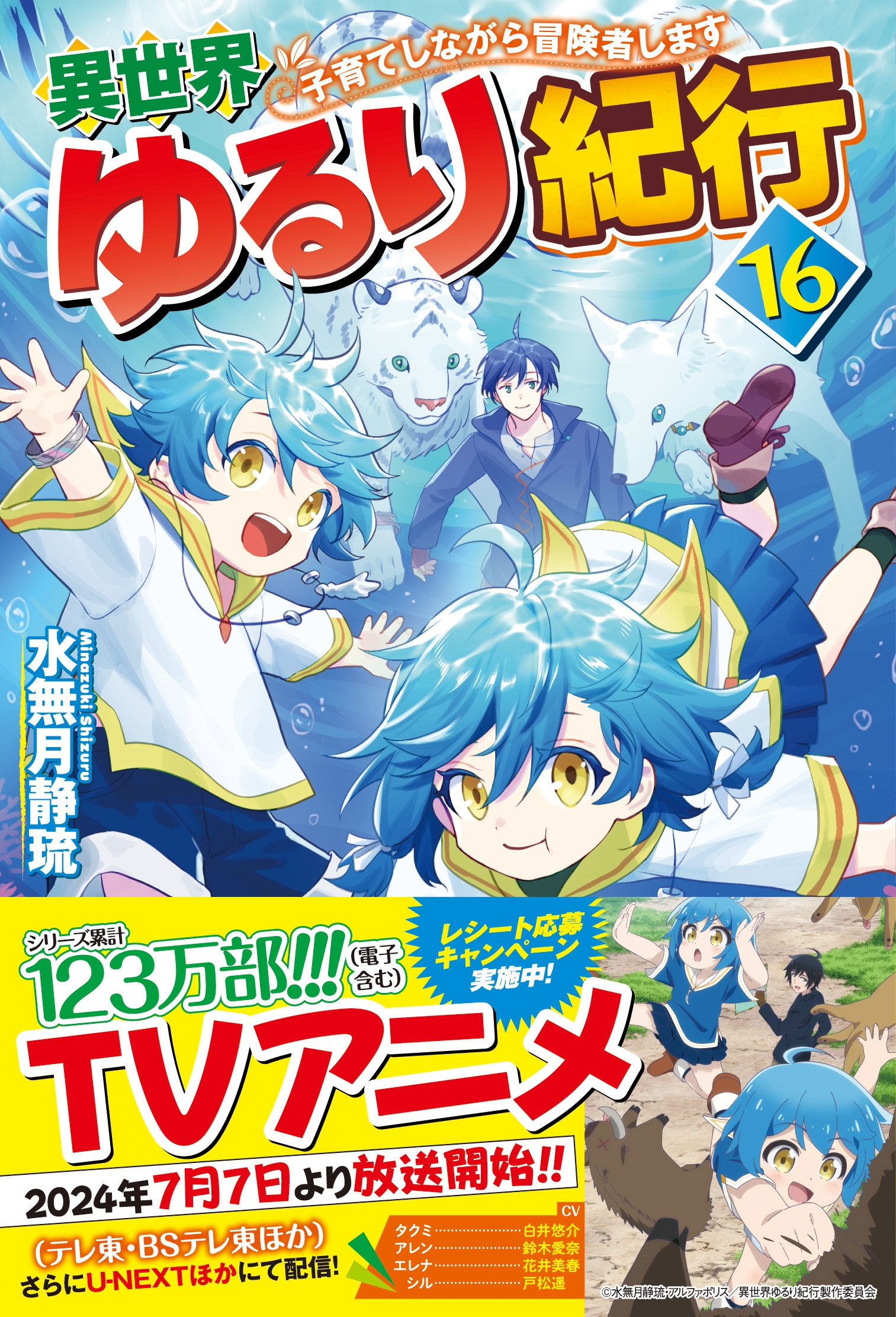 風の神シルフィリールのミスによって命を落とし、異世界に転生したタクミ。森の中で双子のアレンとエレナを保護した彼は、冒険者として生活を始めた。ガディア国内に滞在し、迷宮攻略を楽しんでいたタクミ達一行の元に、仮契約しているリヴァイアサンのカイザーが、人化して遊びに来た。海に行くことになった彼らは、せっかくだからと以前訪れた海の中にある人魚族の里、蒼海宮へ向かうことに。巫女姫様達と久々に再会し、おもてなしを受けていたところ、また別の人魚族の里、碧海宮に行かないかと誘われる。どうやらその里の人魚達から、タクミ達にお願いがあるようで――転生冒険者の子連れ異世界のんびりファンタジー、第16弾!