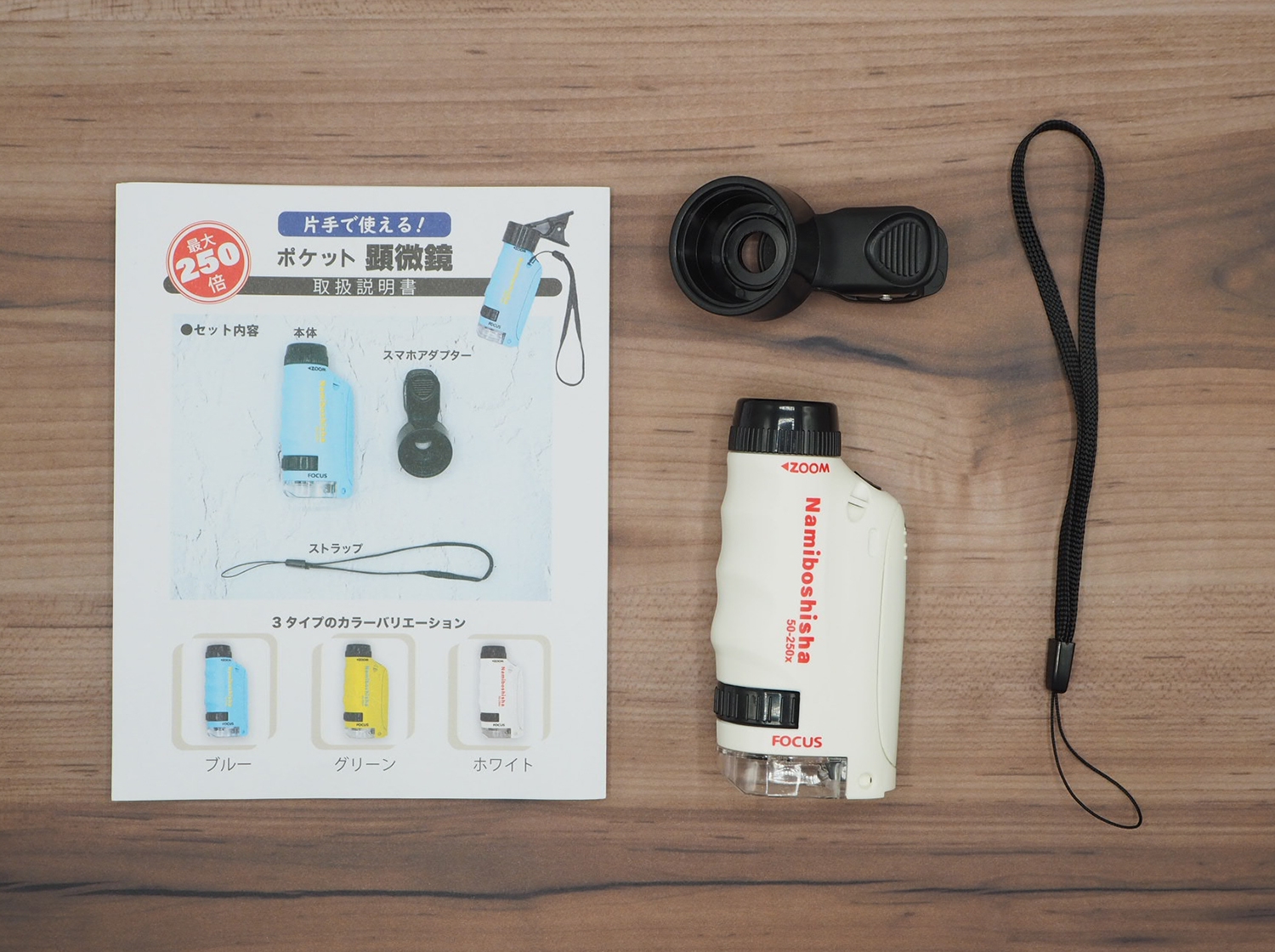 また、発見を記録するためのスマホアダプターが付属しています。スマートフォンのカメラを通して観察した標本の画像や動画を撮影し、保存することができます。さらに、観察結果を共有したり、学習の記録として活用したりすることが可能です。自由研究がより楽しく有意義な経験になります。