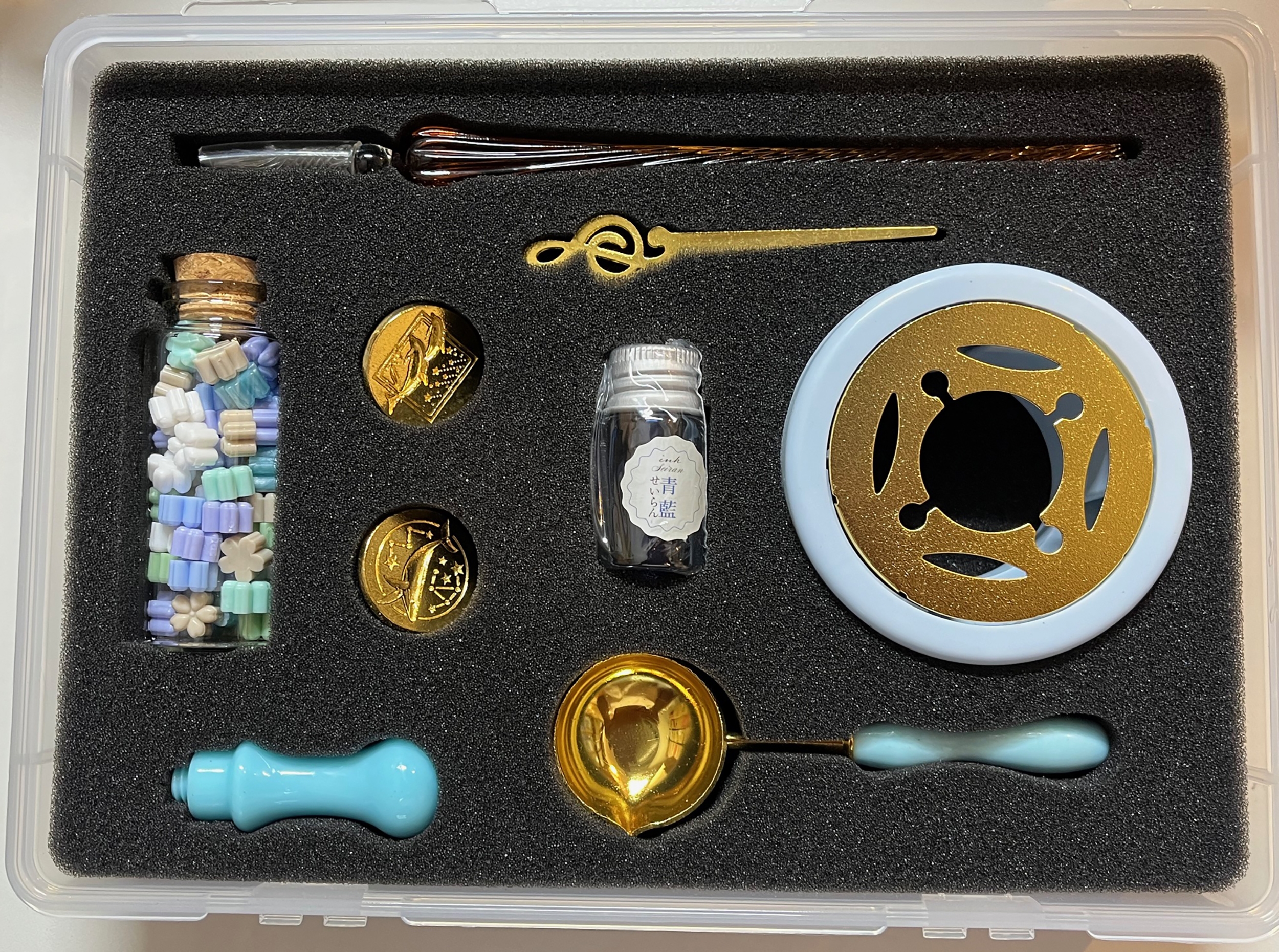 はじめての方でもすぐ楽しめるよう、ガラスペンとインク、シーリングスタンプやワックス等をセットにしました。メールやSNS全盛の現代において、敢えて雰囲気のある手紙をしたためたくなるセットです。何気ない手紙も心のこもった特別な贈り物に変身します。