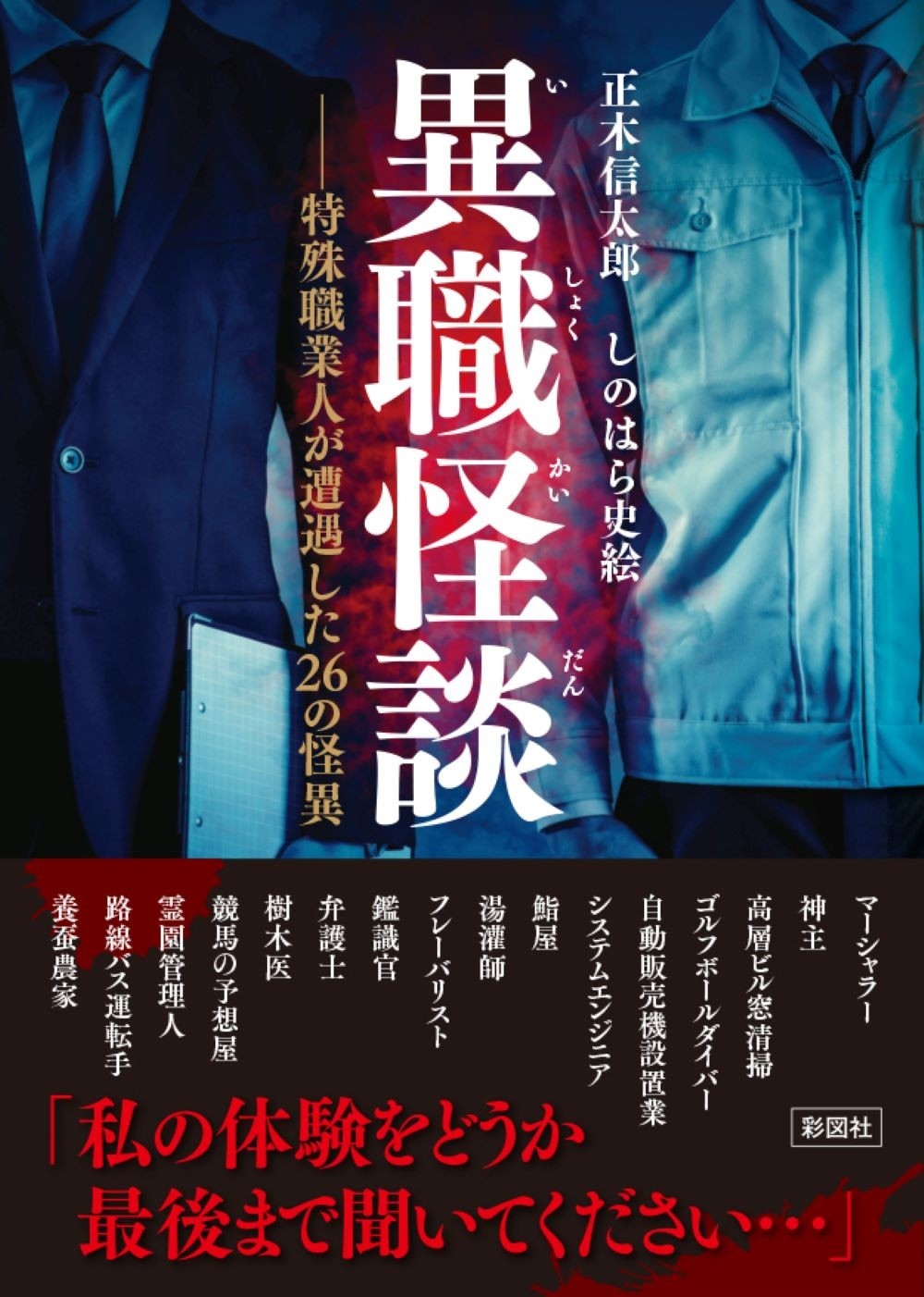池に落ちたボールを拾うゴルフボールダイバー、弱った木々を治療する樹木医、伝書鳩を育てる伝書鳩ブリーダー……。そうした特殊な職業についている人々が体験する怪異は、一味も二味も変わっていることが多い。鮨職人が目撃した謎の「のっぺらぼう」の正体。死の香りを嗅ぎ分けるフレーバリスト。シューフィッターのもとにやってきた不気味なフジツボ男。路線バス運転手が遭遇したもの言わぬ乗客たち……。