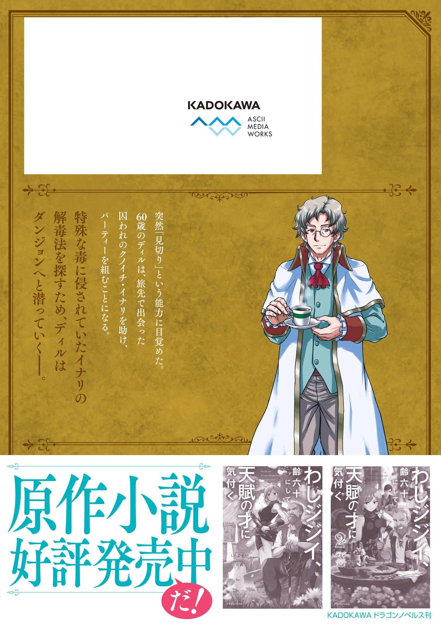 60歳のディルは突然得た力「見切り」を使いこなし、モンスターを倒して旅を続ける。旅先で出会ったクノイチを仲間にし、深いダンジョンへと潜り込む。