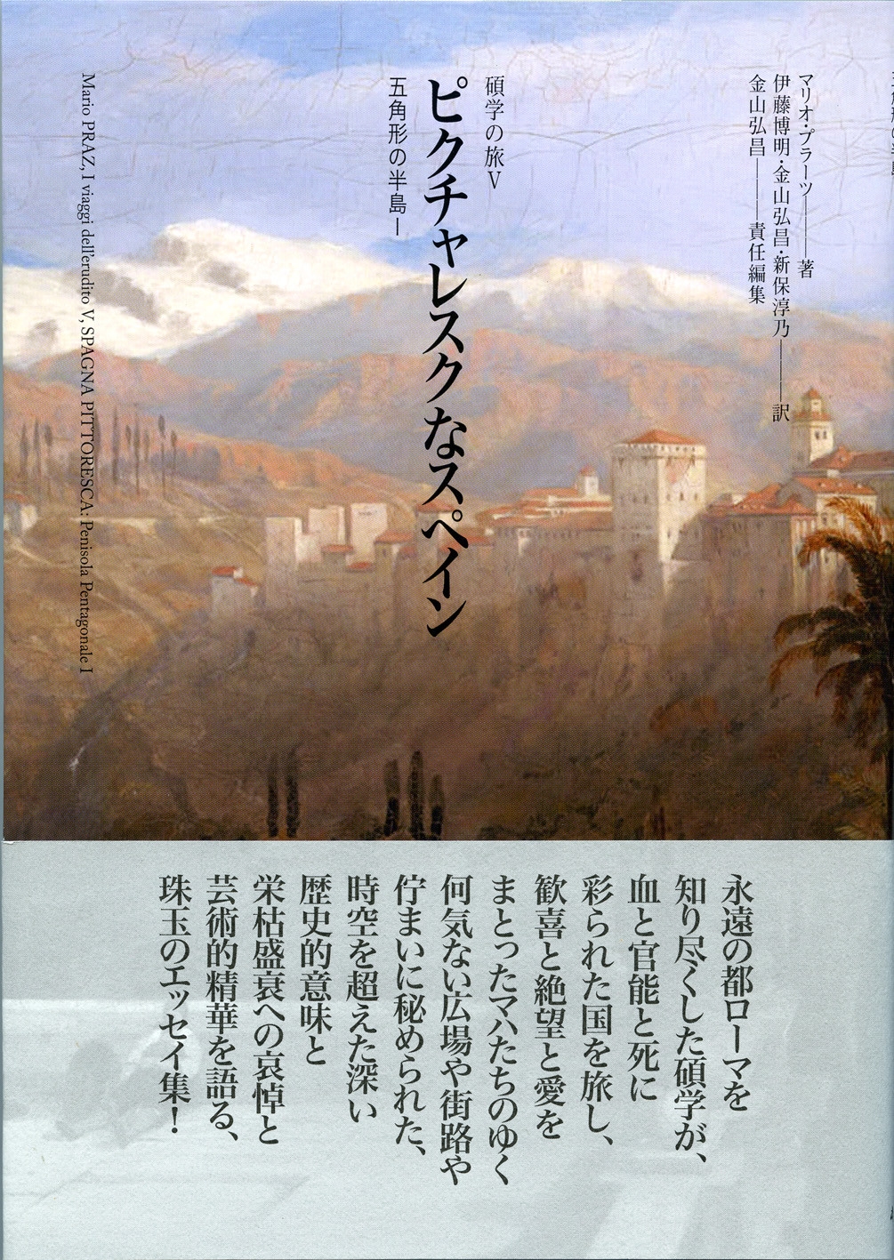 プラーツは一九二六年にスペインを訪れた。その若きプラーツが原著において意図したもの、それは一九世紀以降の西欧の近代文学、とりわけ紀行文において、ワシントン・アーヴィングやプロスペル・メリメ、テオフィル・ゴーティエやエドモンド・デ・アミーチスらによって営々とひきつがれ、築きあげられてきた、「ピクチャレスク」で「ロマン主義的」、そしてイスラム文化の影響により多分にエキゾチックなスペインのイメージ、すなわち闘牛とフラメンコ、アルハンブラ宮殿とシェリー酒に彩られた定型的、常套句的なスペイン像に対して論駁することであった。そしてプラーツは、スペインの文化や芸術の本質が、「ピクチャレスク」どころかむしろ反対の「偉大で力強いモノトーン」であることを、いささか自家撞着的だが、体験談や引用を抱負に織り込んだ「ピクチャレスク」な文体によって例証していく。しかしプラーツの目的は、ドキュメンタリーやルポルタージュ的な意図によって、スペイン社会の現実に光をあてることではない。プラーツの関心は、終始一貫して、現実のスペインに対してよりもむしろ文学で描かれたスペインに、あるいはスペイン的なものの表象としての美術や建築、風習などに対して向けられている。また多くの引用に彩られた記述は、スペインの現実との乖離を指摘しながらも、ロマン主義のスペイン紀行を批判的に回顧するような、旅行記の体裁を装った文学批評とも解釈できる。さらに言えば、若きプラーツには、文学史家、批評家としての領分にとどまらず、自らスペイン叙述の新たなかたちを示そうという、一種の文学的野心をもうかがいみることができる。つまり本書自体が、批判的な立ち位置を示しつつも、スペイン紀行の文学的伝統に連なっているのである。