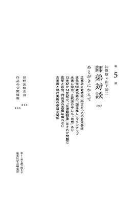 さらに、辻氏が愛する室町時代のユニークな絵入り本『かるかや』と昭和の国民的画家・東山魁夷の作品についても詳しく紹介し、最後は、東京大学時代の教え子・山下裕二氏(明治学院大学教授)との「師弟対談」にて締めくくり。