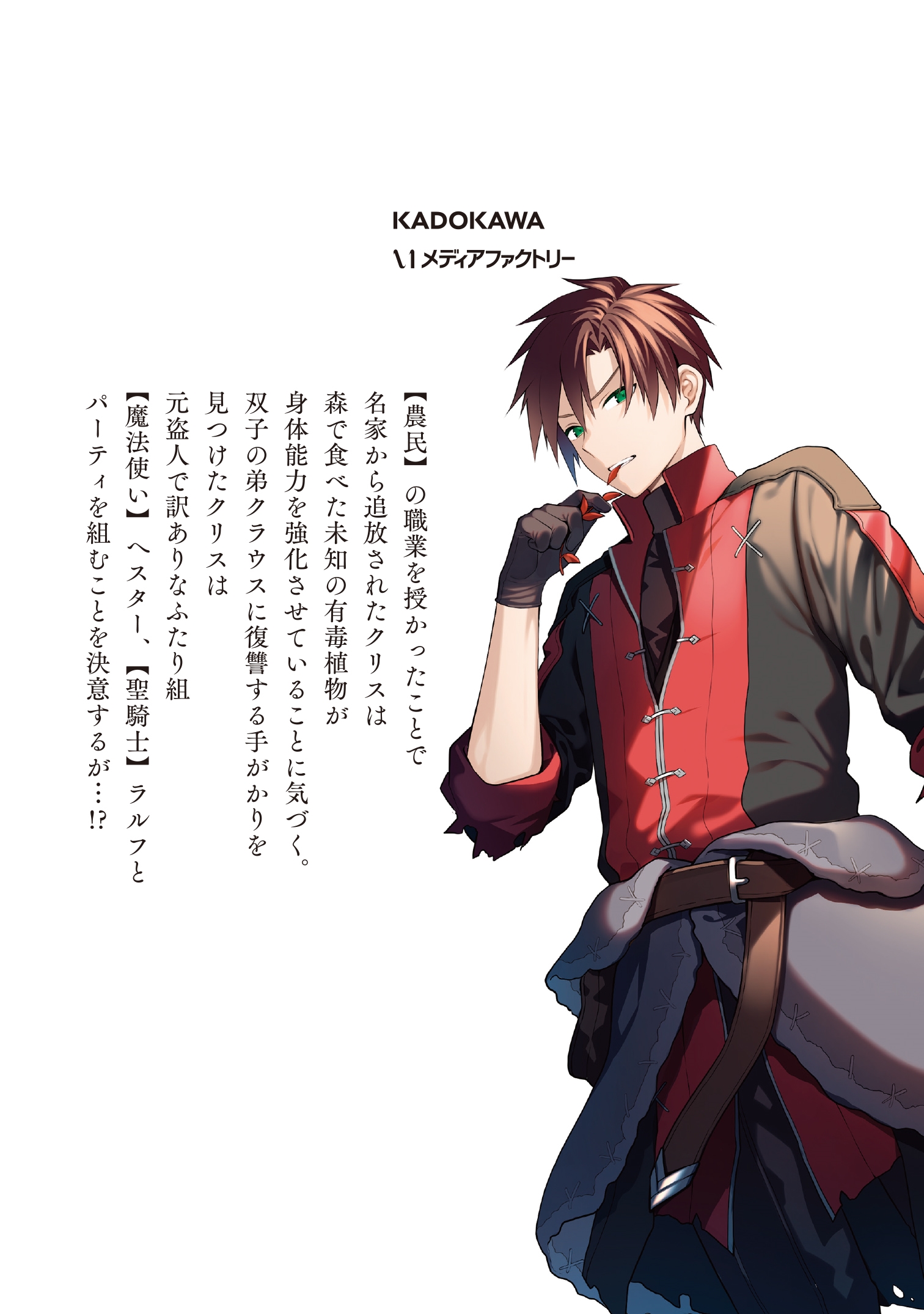 代々剣の職業を授かってきた名家の長男クリスは、天恵の儀で【農民】の職業を授かったことにより家から追放されてしまう。絶望のさなか、固有スキル毒耐性に特別な力が秘められていることが判明し!?