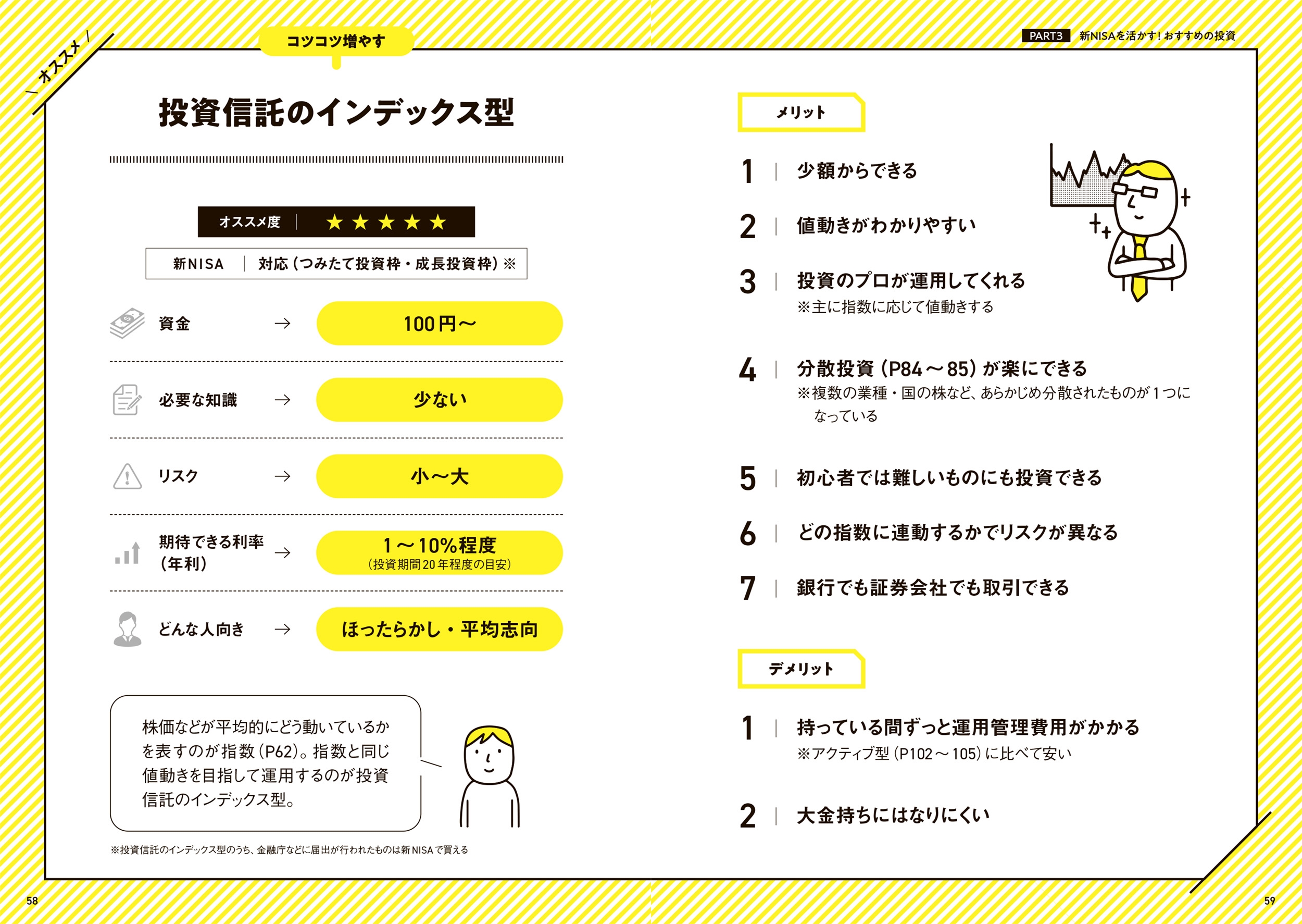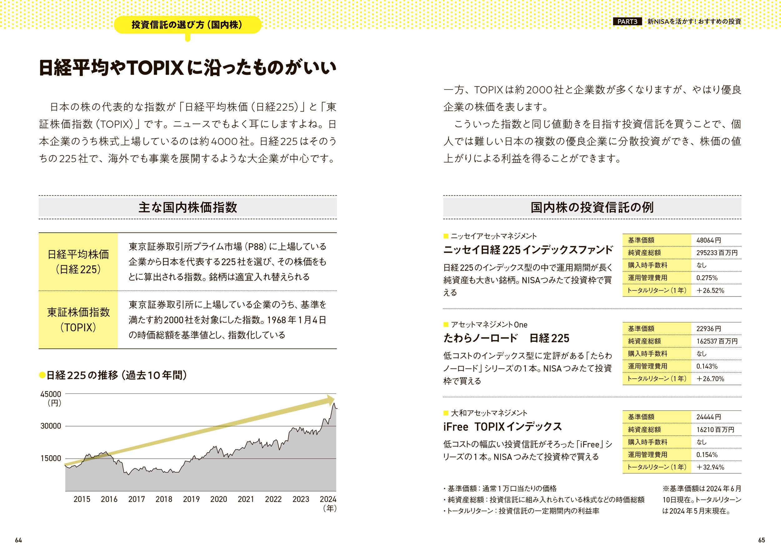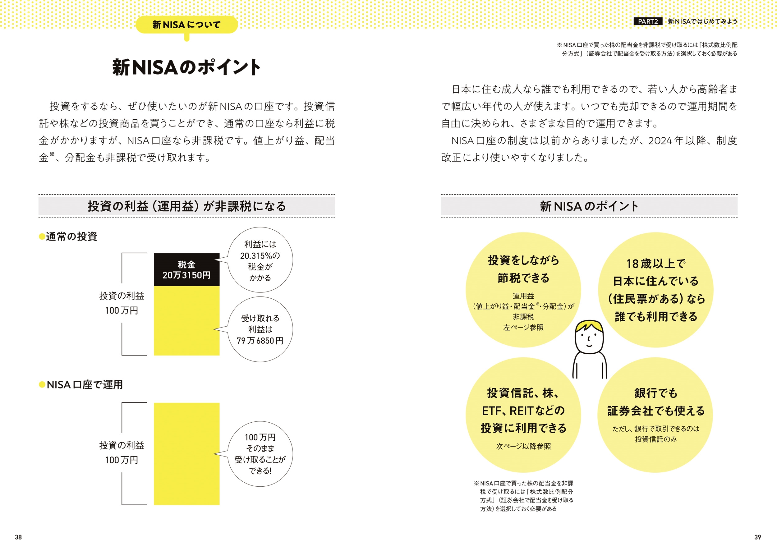 そこで、本書では「初めて投資に向き合う」という方に寄り添って、新NISAの使い方、優良な投資信託・株の見つけ方に関し、実際に必要となることだけを解説しています。また、文字を読みながら理解するのが苦手、という方に向けて全ページ、図を中心に展開しています。