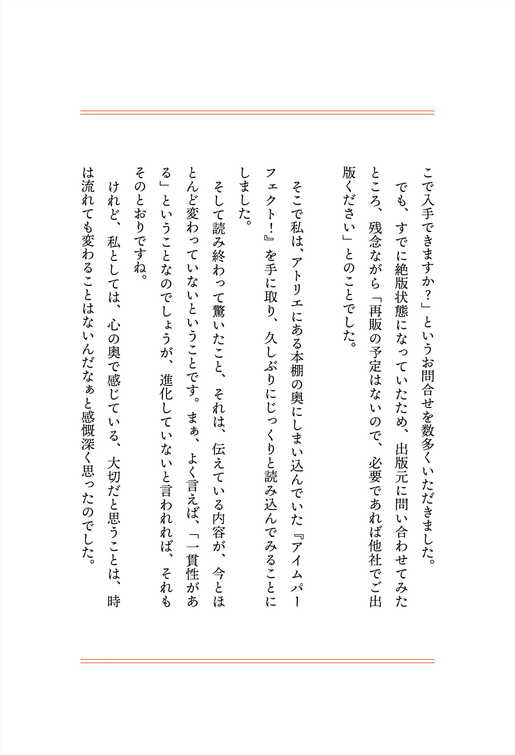 本書は2010年に経済界より発刊された『アイムパーフェクト!』の新装改訂版です。