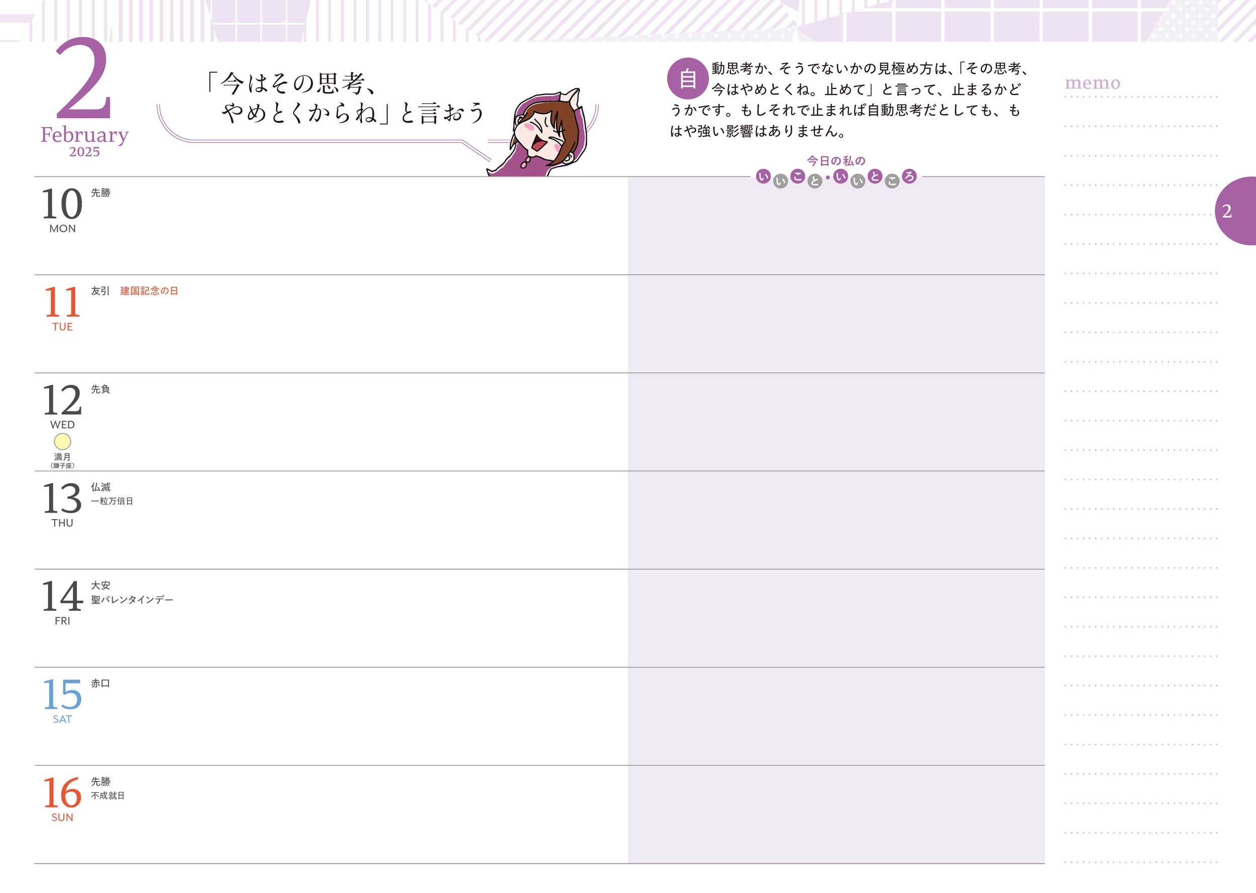 意識変容したいけれど、「毎日できない」「続かない」「あきらめた……」という声を聞いて、著者に降りてきた1年間の意識変容プログラムのワークを、ぎゅぎゅっと詰め込んでいます。手帳の大きなテーマは、「身体とつながる」。日々の身体のワークと、毎月順に取り組んでいくテーマワーク、月終わりに振り返りを行うことで、意識変容できるような構成になっています。自分のいいこと、いいところを書き込む欄や、週ごとのミニコラムも。手帳使いを応援してくれる、オリジナルキャラクターシールつき。