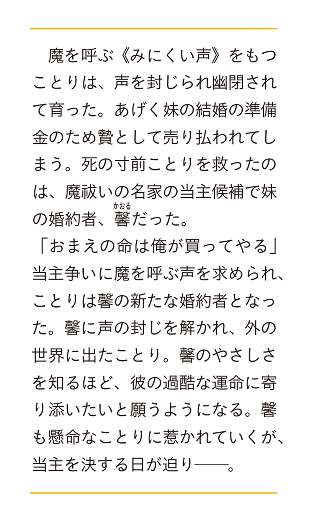 当主争いに魔を呼ぶ声を求められ、ことりは馨の新たな婚約者となった。