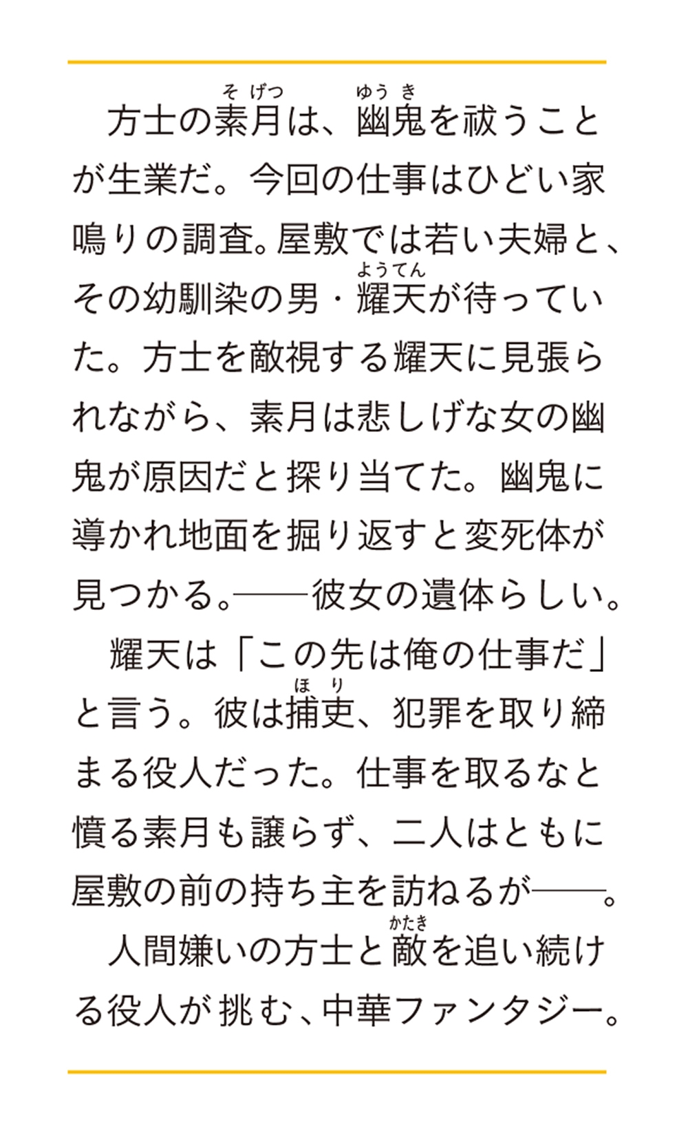 方士の素月は、幽鬼を祓うことが生業だ。
