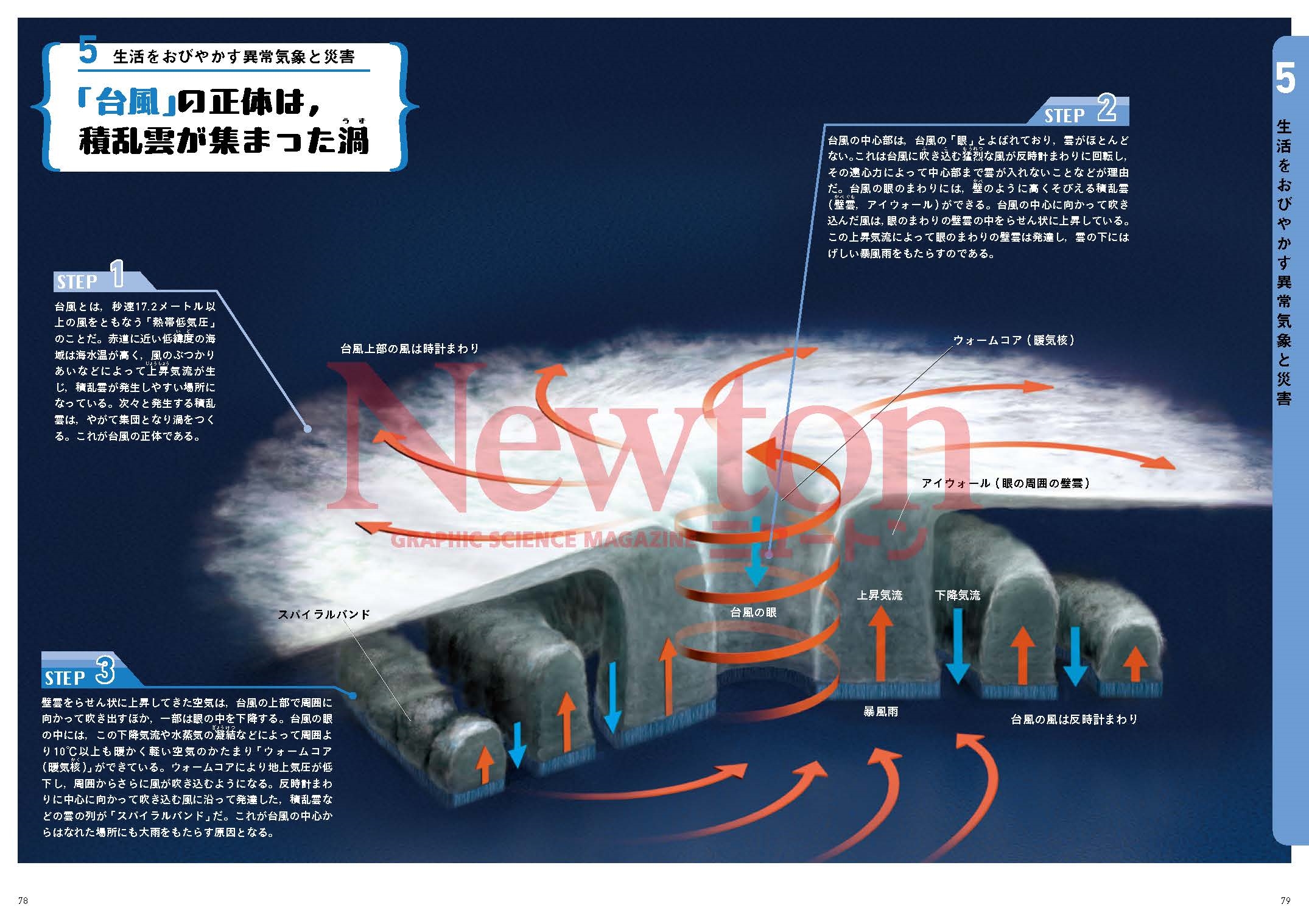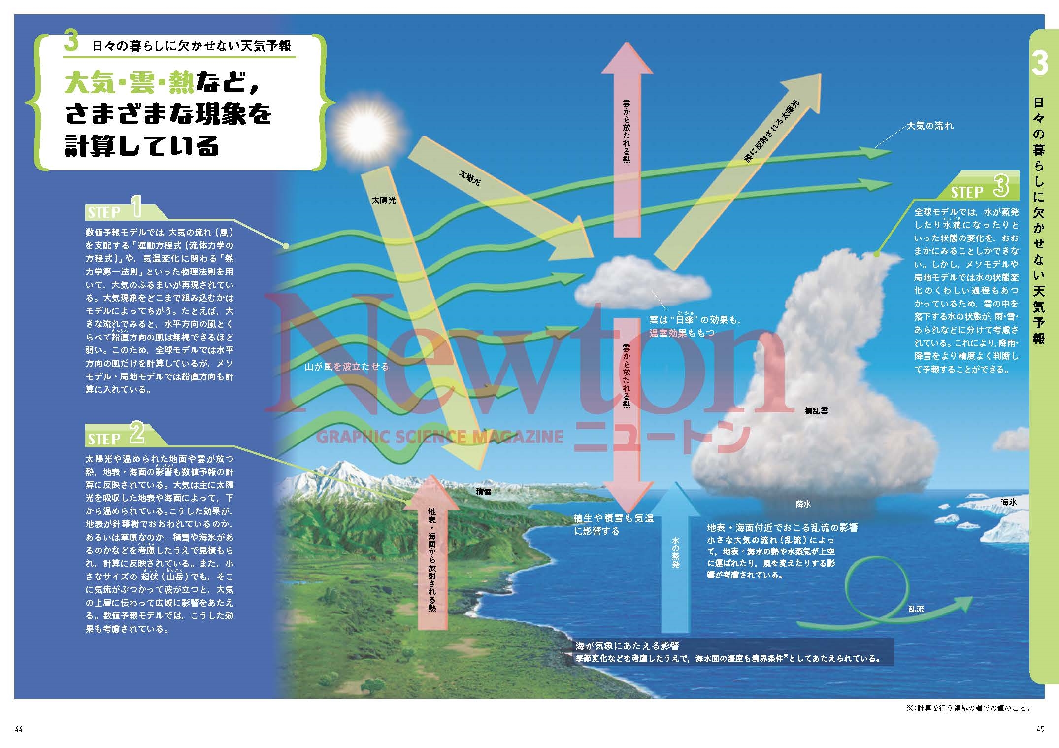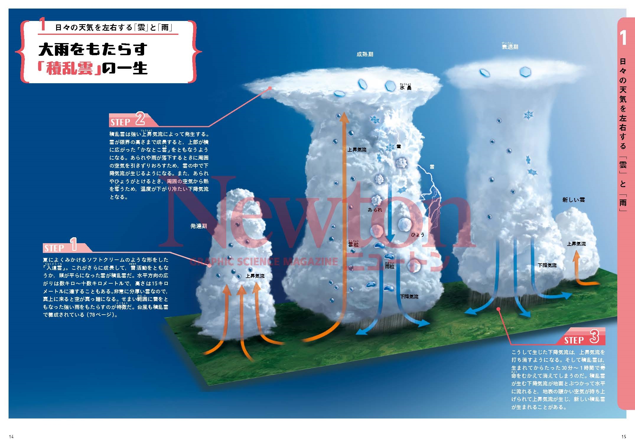 好評の新書籍シリーズ,第3弾のテーマは人気の「天気と気象」。ニュートンの強みであるわかりやすい図やイラストを全面に使い,楽しく眺めるだけで天気と気象についてサクっと理解できるようになっています。STEP1~3を順に読んでいくだけなので,長い解説を読み込んだり,読む順番に迷ったりということもありません。