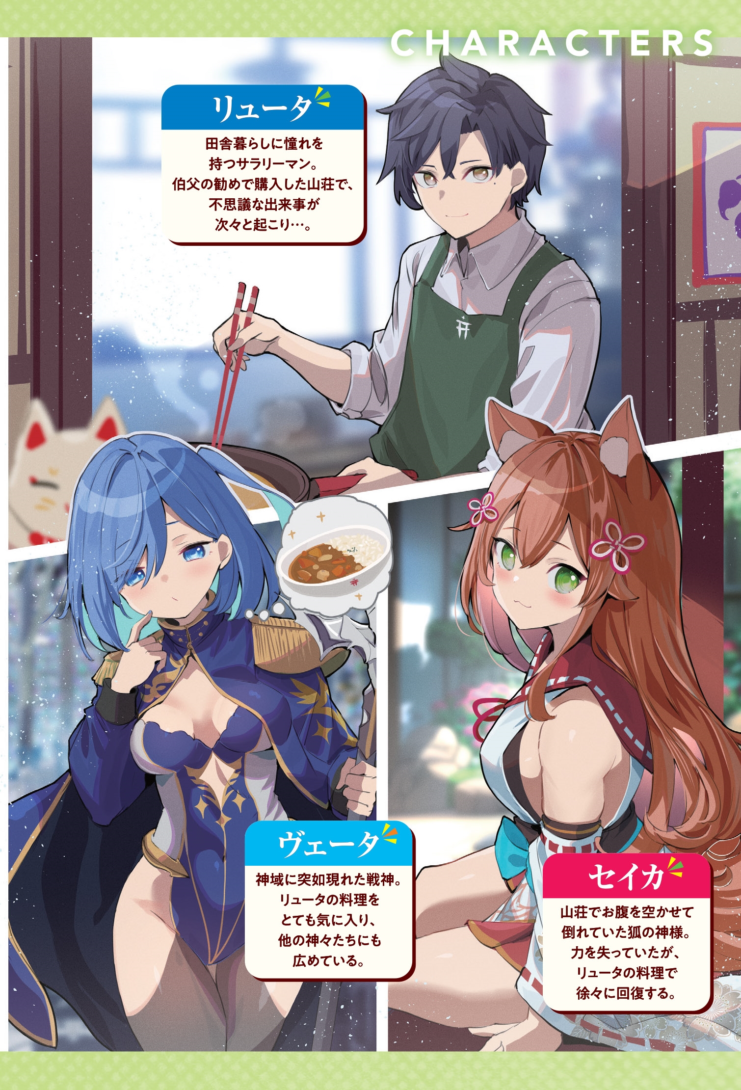 念願の山暮らしを始めたリュータは、DIYで理想の環境を整えていく。その日の深夜、謎の声が聞こえた方向に進んでみると、なんと山荘の地下が異世界に繋がっていて…!? 力を失い消滅目前だった神・セイカと出会い料理を振舞ったところ、みるみるうちに力を取り戻していくセイカ。どうやらリュータの料理には、神々を癒やす力があるようで…。