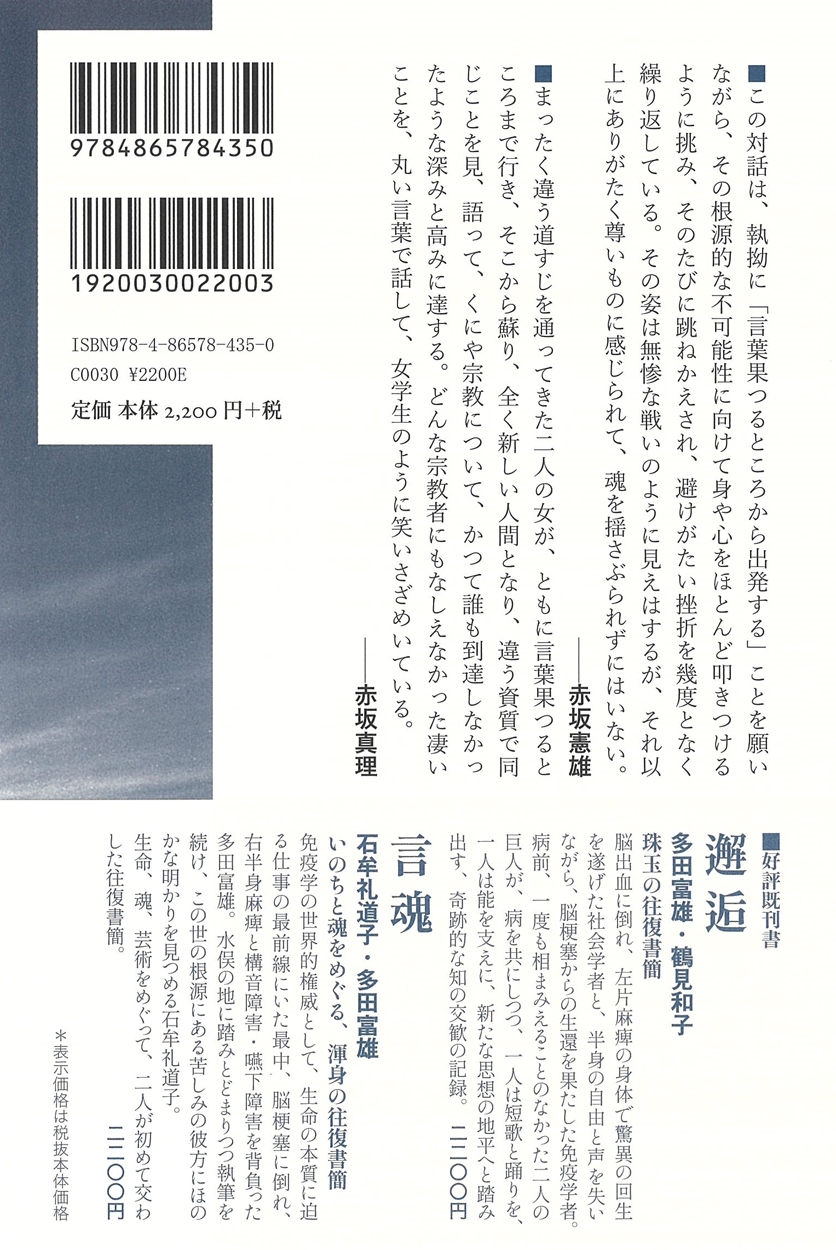 水俣病をその身に背負う人たちの、言葉にならない魂の叫びを言葉にうつしとり、『苦海浄土』を書いた石牟礼道子。明晰な言葉で内発的発展論を唱えてきたが、水俣に入り、"言葉ではどうにもならない"現実に直面し苦悩する鶴見和子。言葉より深く、言葉を超え、しかし言葉にすがりつかざるをえない鬩ぎ合いの地平で交わされる、鬼気迫る対話、待望の復刊。