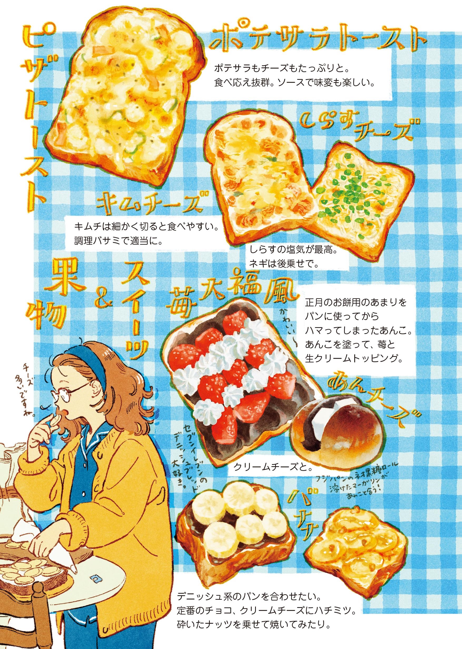 「さて、今日は何食べよう。」 ツナチェダーチーズ、たまごサンド、苺大福トースト――朝の訪れを彩るパンたち。近所で出会った「職人の店」のとびきりおいしいパスタ。熱々餃子をお酒で流し込む、最高の週末。特別なブランチは、クレープをテーブルいっぱいに並べて。きれいなお菓子缶に好きなおやつをぎっしり詰める。お気にいりのかわいいカップ。新しい生活に向けて、ダイニングテーブルを新調する――。