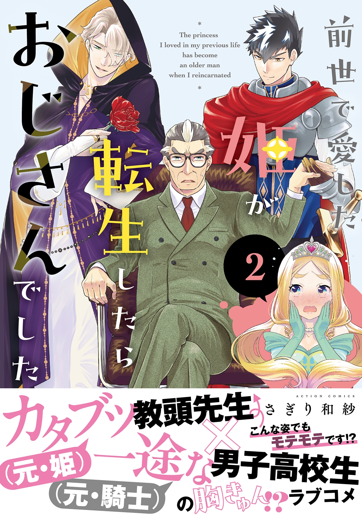 おじさん教頭先生に転生した姫を、騎士だった男子高校生は一途に愛する!クラウディア姫がおじさんに転生したのは、魔術師アンジェロがかけた呪いのせい!?アンジェロから「真実の愛」を証明出来れば呪いが解けると聞いたハルトは、「真実の愛=キス」と考えて、蔵人といかに自然にキスが出来るかを考える。ハルトの母親も登場して混沌とする人間関係の中、二人はキスをして元の二人に戻れるのか?「騎士×姫(おじさん)」。笑って泣ける、かつてない転生コメディ第2巻。