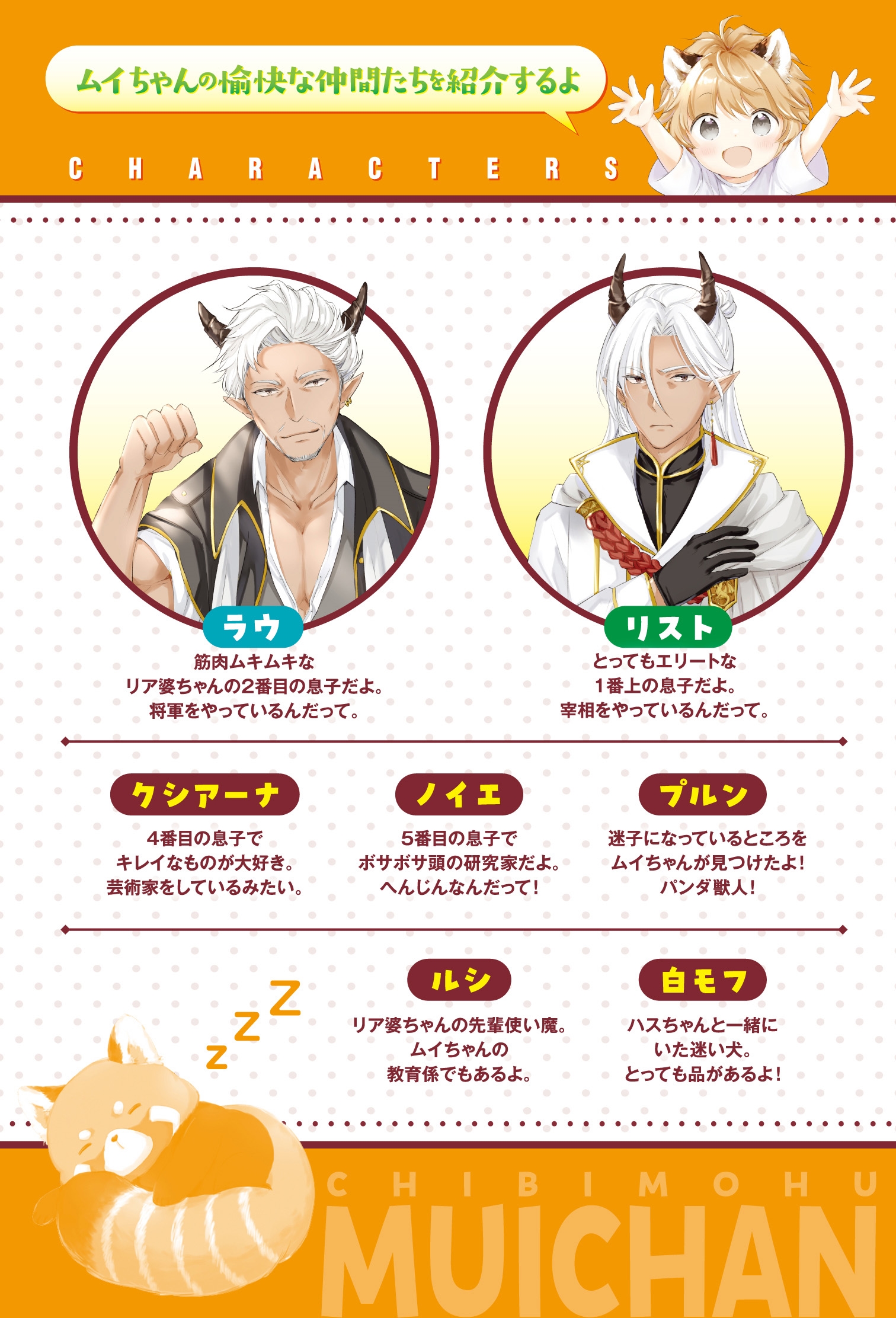 リアの使い魔となり「ムイムイ」という名前を授かった通称「ムイちゃん」。魂の徳が高いムイちゃんは、異例の速さで獣人族に進化! 間抜けな迷い犬・ハスちゃんやナスの妖精、リアの愉快な息子たち…