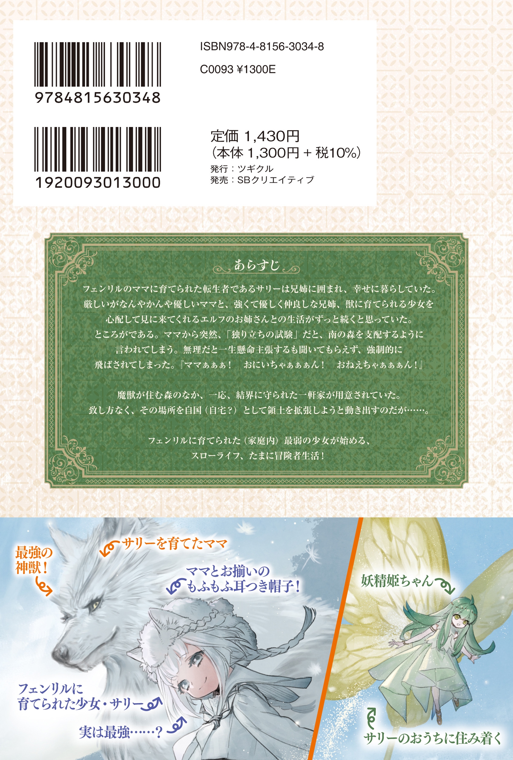 フェンリルのママに育てられた転生者であるサリーは兄姉に囲まれ、幸せに暮らしていた。厳しいがなんやかんや優しいママと、強くて優しく仲良しな兄姉、獣に育てられる少女を心配して見に来てくれるエルフのお姉さんとの生活がずっと続くと思っていた。
