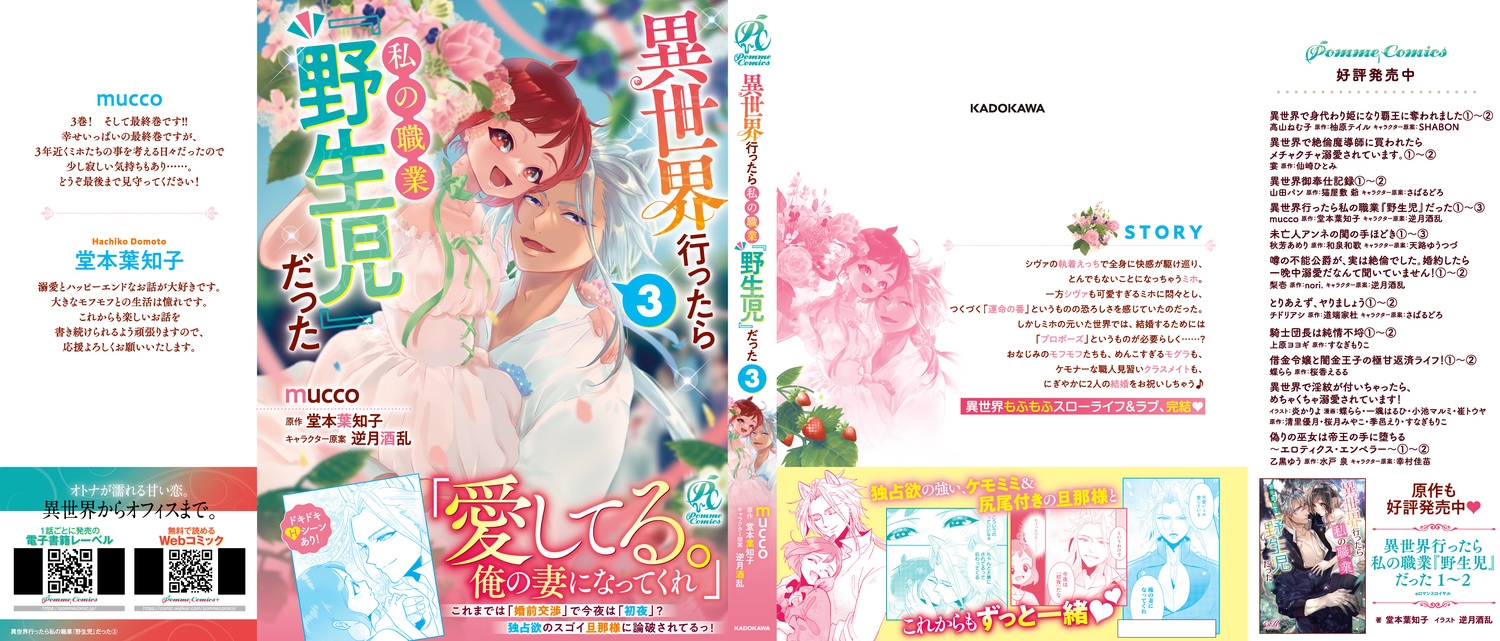 シヴァの執着えっちで全身に快感が駆け巡り、とんでもないことになっちゃうミホ。こんな生活が続くと身がもたない~! 一方シヴァも可愛すぎる奥様に悶々とし、つくづく「運命の番」というものの恐ろしさを感じていたのだった。雄としての本能がビシバシ刺激され、他の人の目に触れさせることさえ嫌になるなんて。しかしミホの元いた世界では、結婚するためにはどうやら「ぷろぽーず」というものが必要らしく……? ミホの新スキル=【野生児な新妻】? おなじみのモフモフたちも、めんこすぎるモグラも、ケモナーな職人見習いクラスメイトも、にぎやかに二人の結婚をお祝いしちゃう♪ 異世界スローライフラブ、ハッピーエンド!