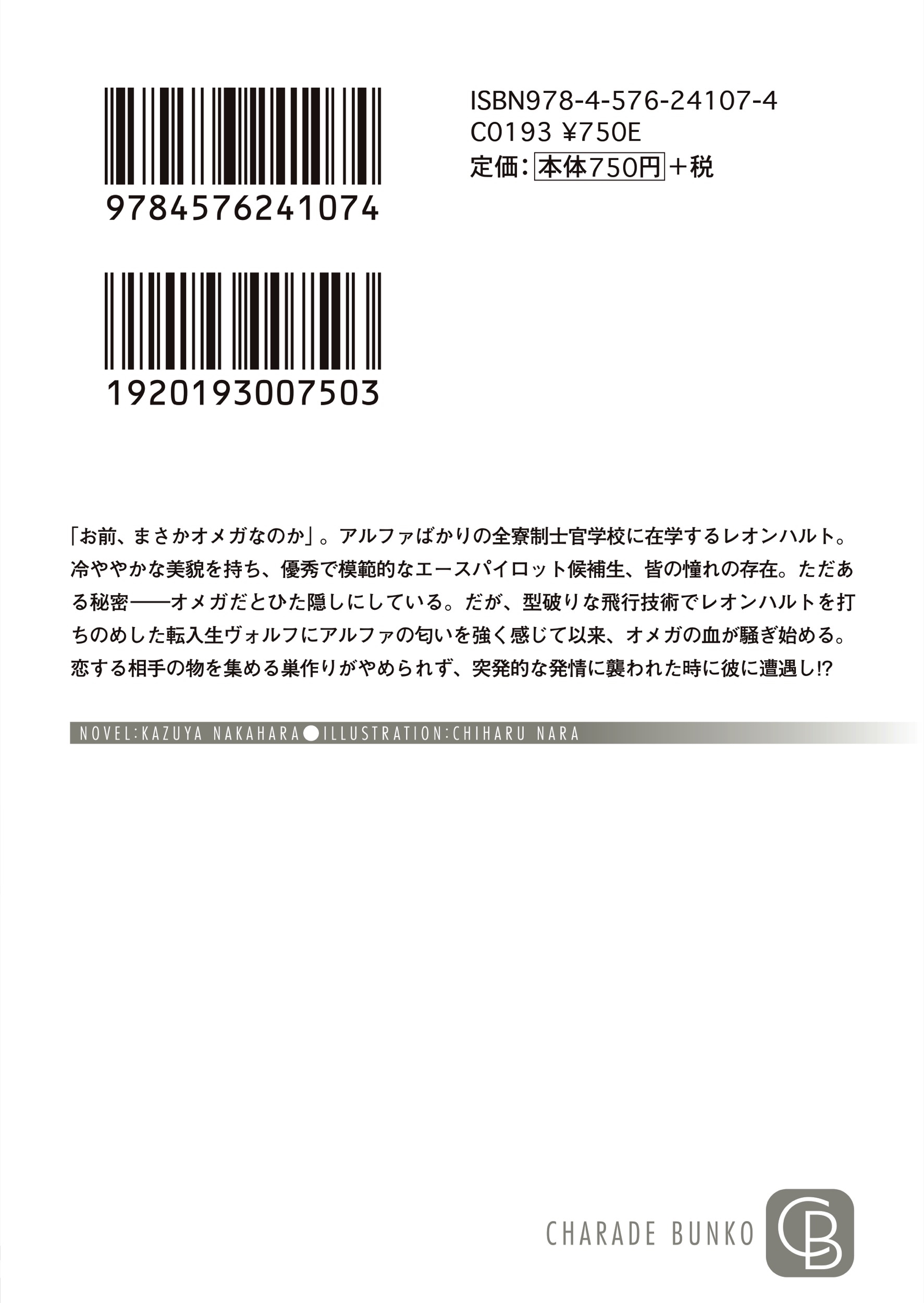 「お前、まさかオメガなのか」。アルファばかりの全寮制士官学校に在学するレオンハルト。冷ややかな美貌を持ち、優秀で横範的なエースパイロット候補生、皆の憧れの存在。ただある秘密――オメガだとひた隠しにしている。だが、型破りな飛行技術でレオンハルトを打ちのめした転入生ヴォルフにアルファの匂いを強く感じて以来、オメガの血が騒ぎ始める。恋する相手の物を集める巣作りがやめられず、突発的な発情に襲われた時に彼に遭遇し!?