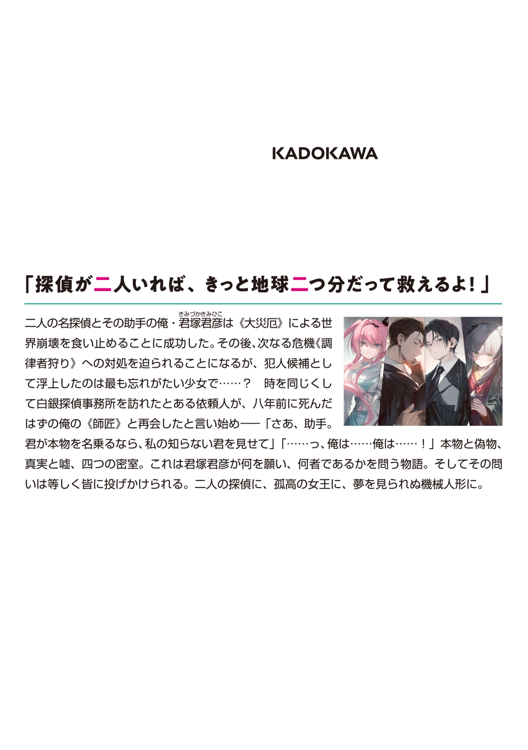 二人の名探偵とその助手の俺・君塚君彦は《大災厄》による世界崩壊を食い止めることに成功した。