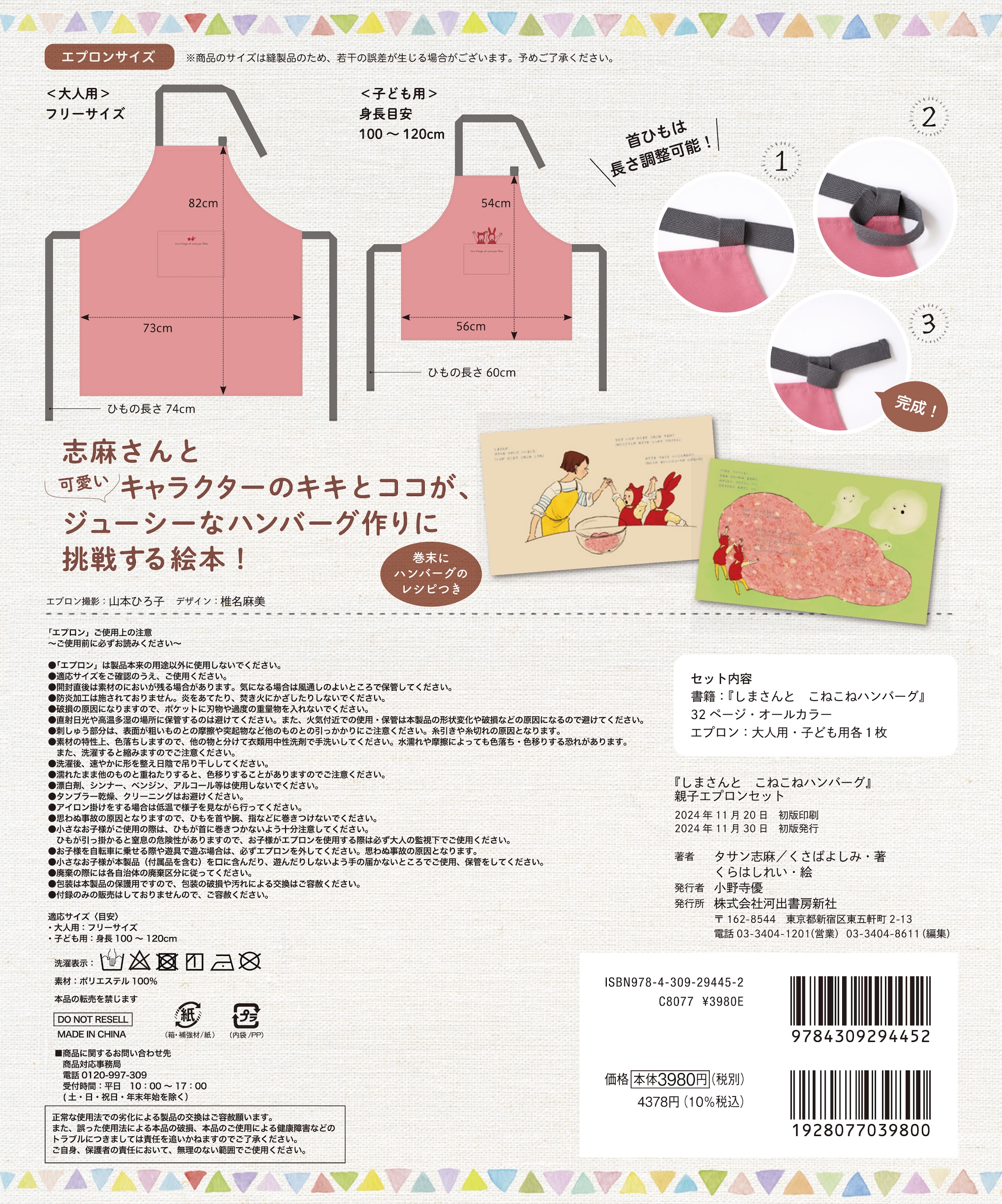 『しまさんと こねこねハンバーグ』親子エプロンセット
